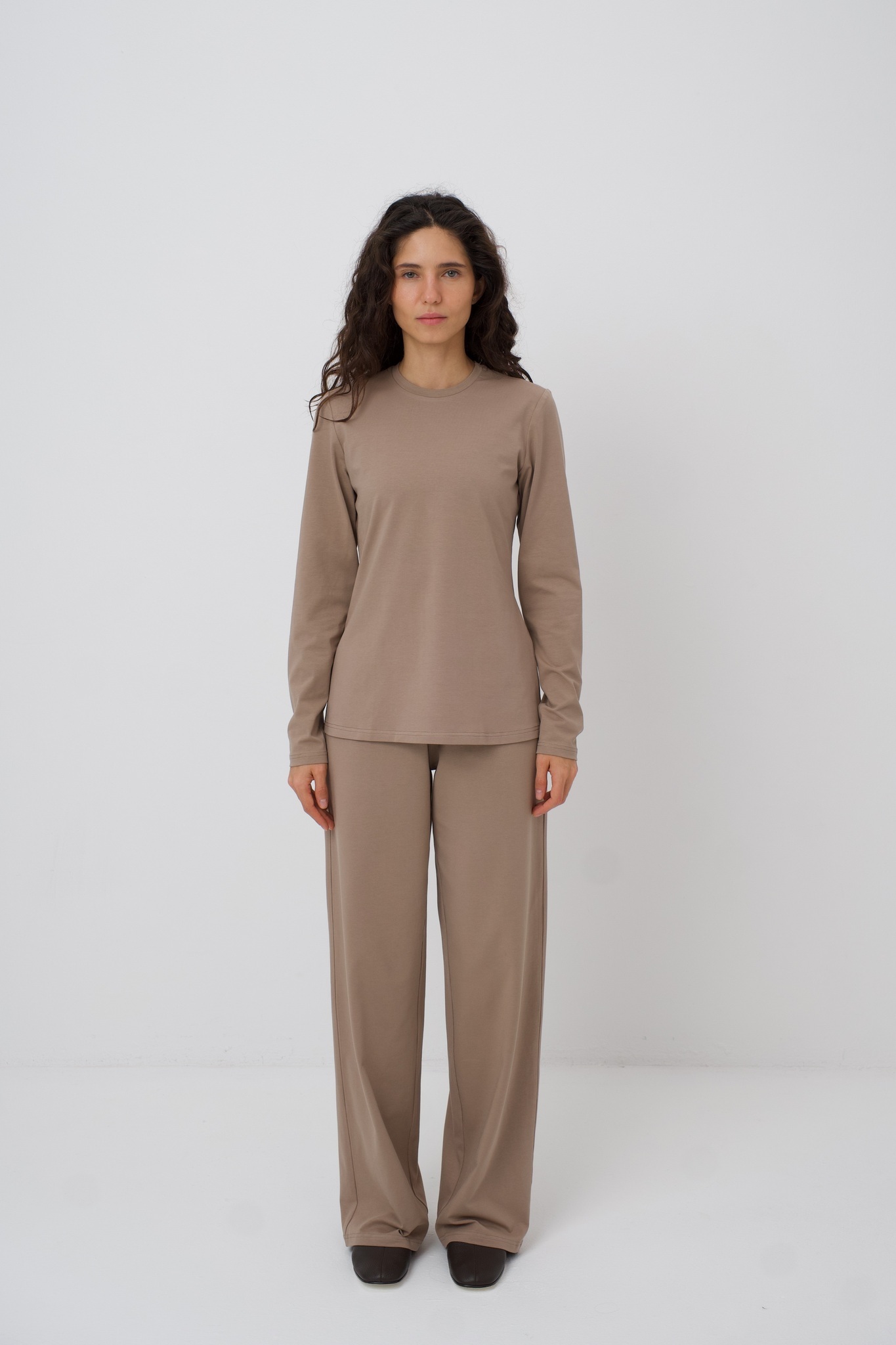 Брюки из хлопка и эластана прямые. Резинка комфортная и мягкая. Ткань приятная к телу. Брюки представлены в двух размерах.