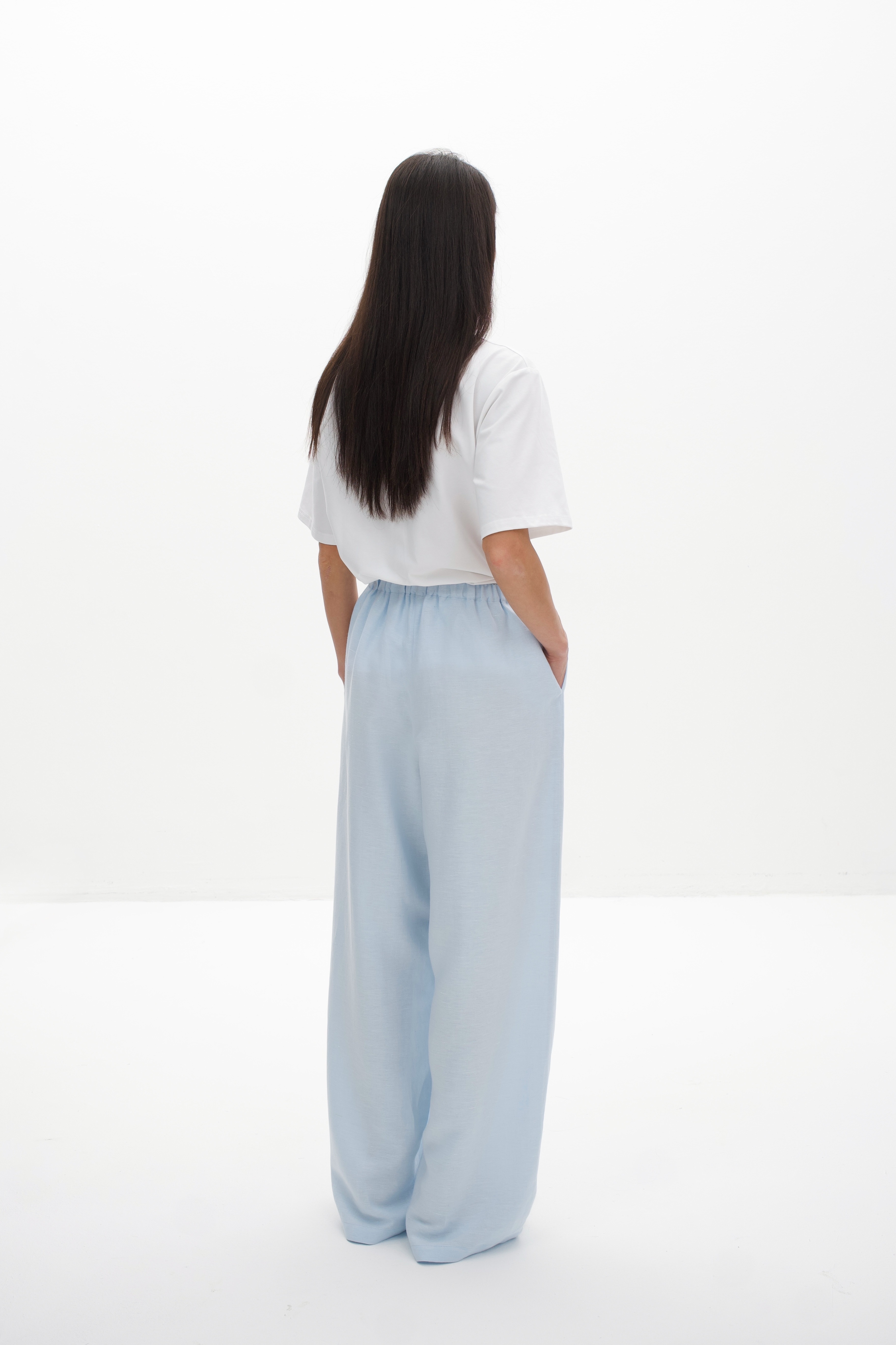 Брюки Mila изо льна и вискозы. Широкие, комфортные и универсальные брюки на мягкой резинке. По бокам карманы.