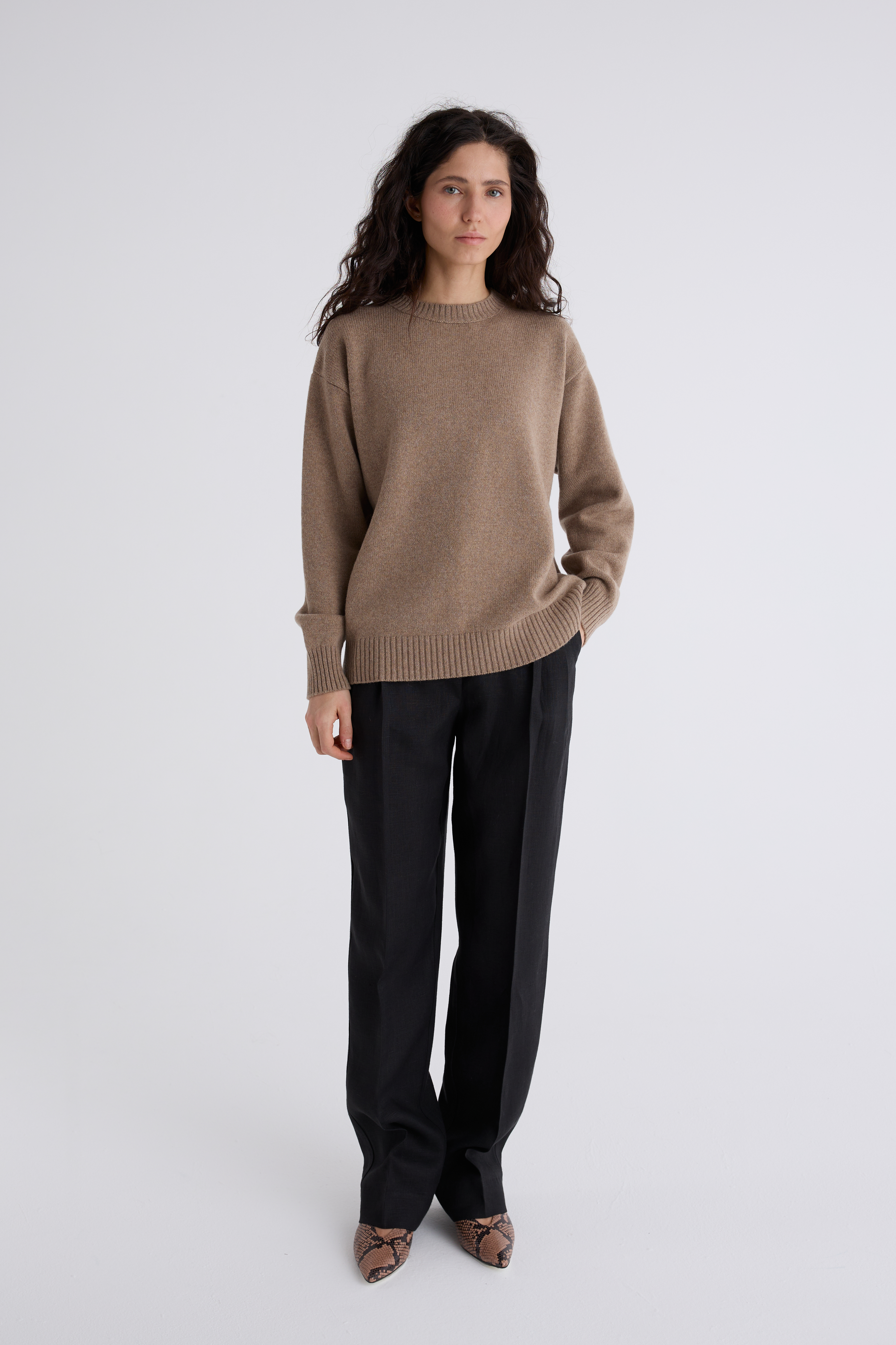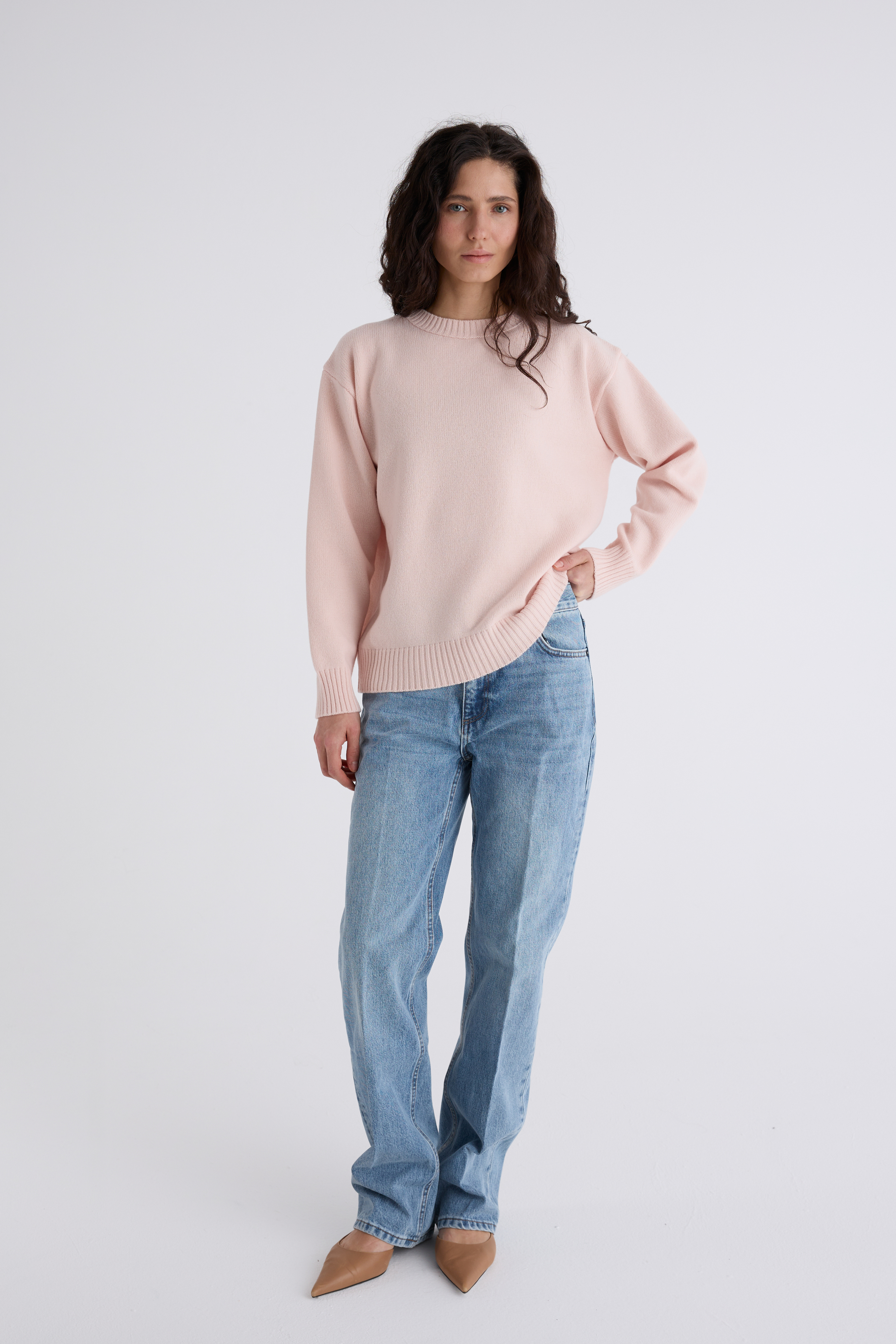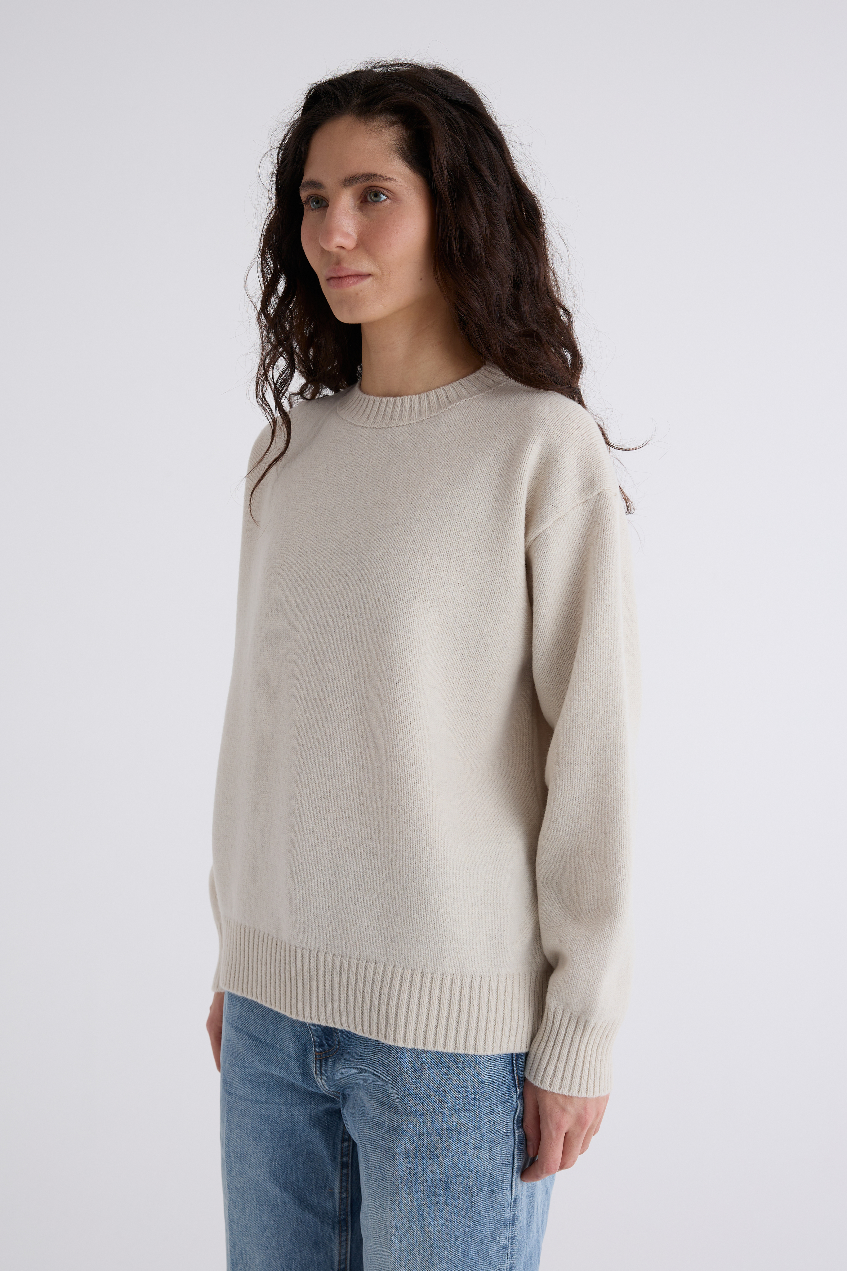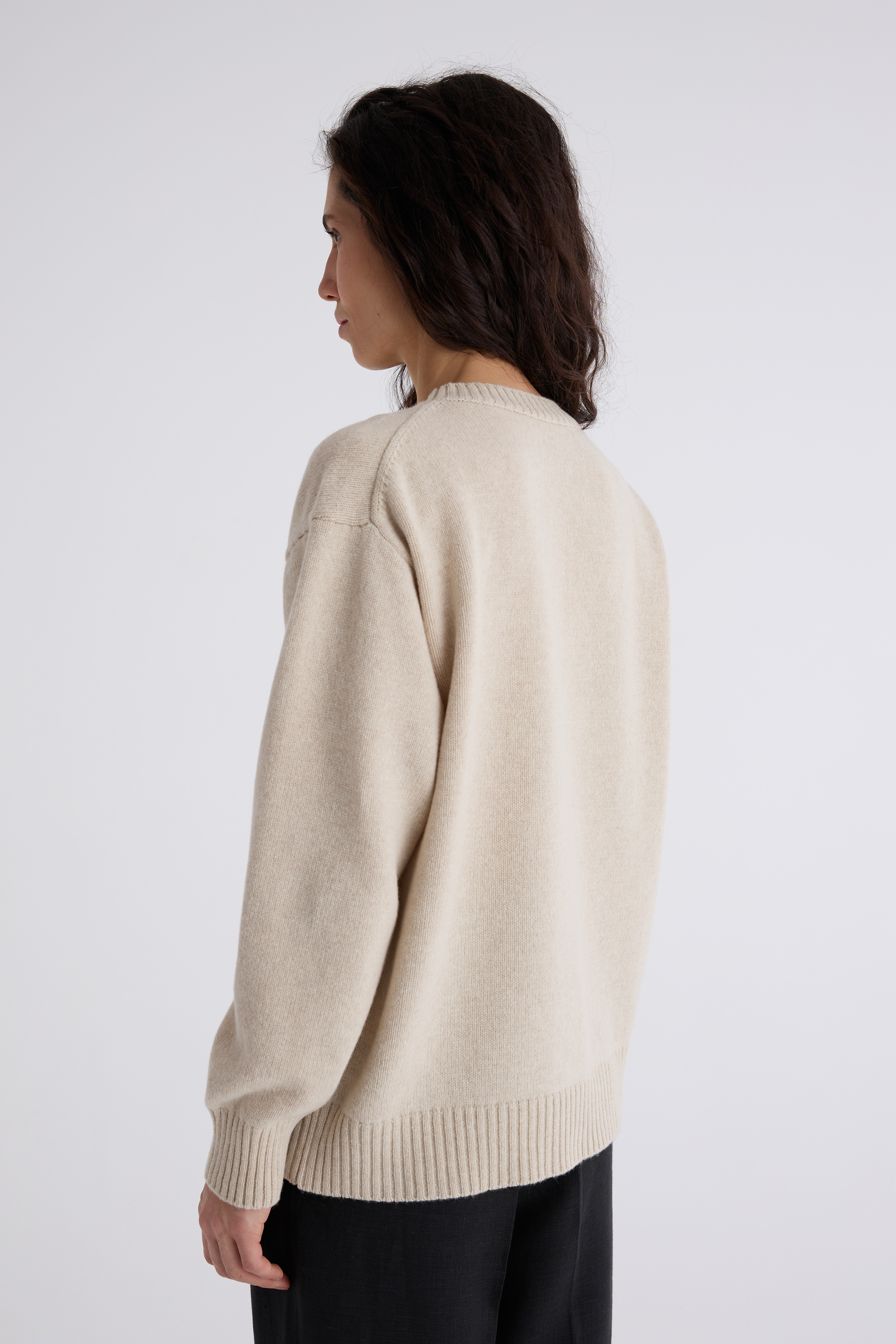 Джемпер Эмма из мериноса и кашемира. Классический джемпер, спинка и перед равной длины, ворот под горло. Плечевой шов отнесён на спинку и имеет декоративную дорожку. Джемпер средней плотности, невероятно нежный и мягкий. Обращаем внимание: для вязаных изделий допустимо расхождение от заявленных параметров на +-3 см.