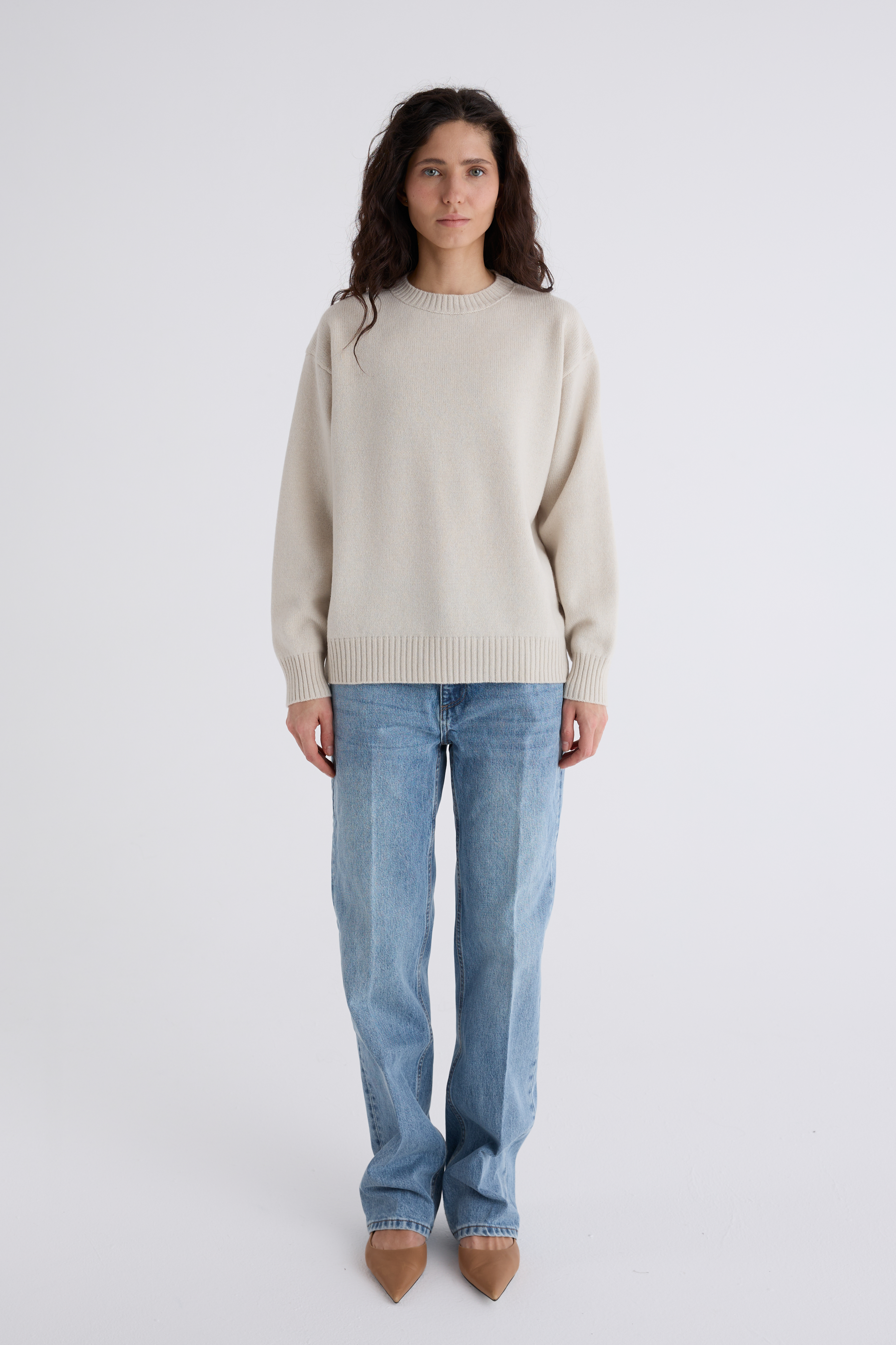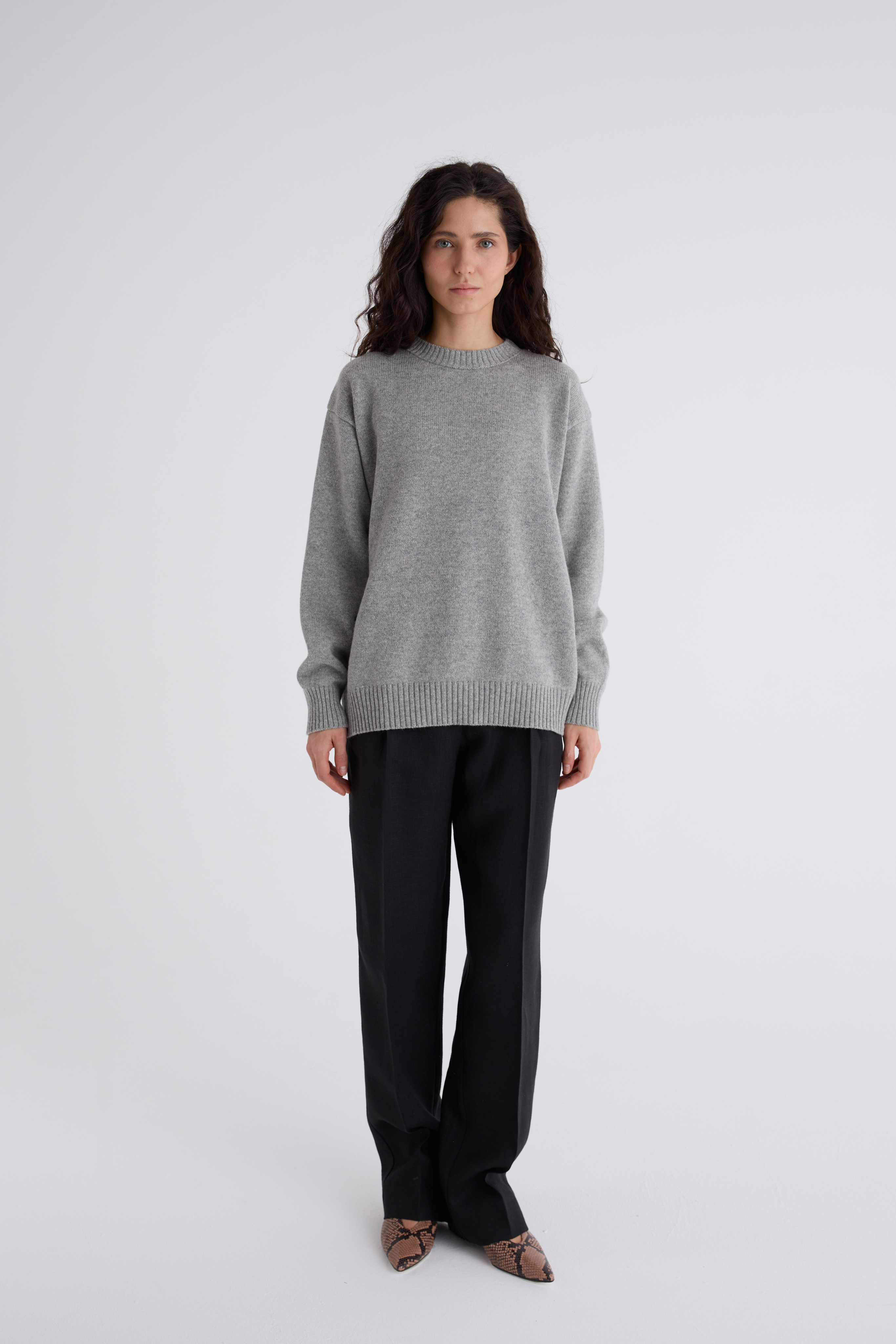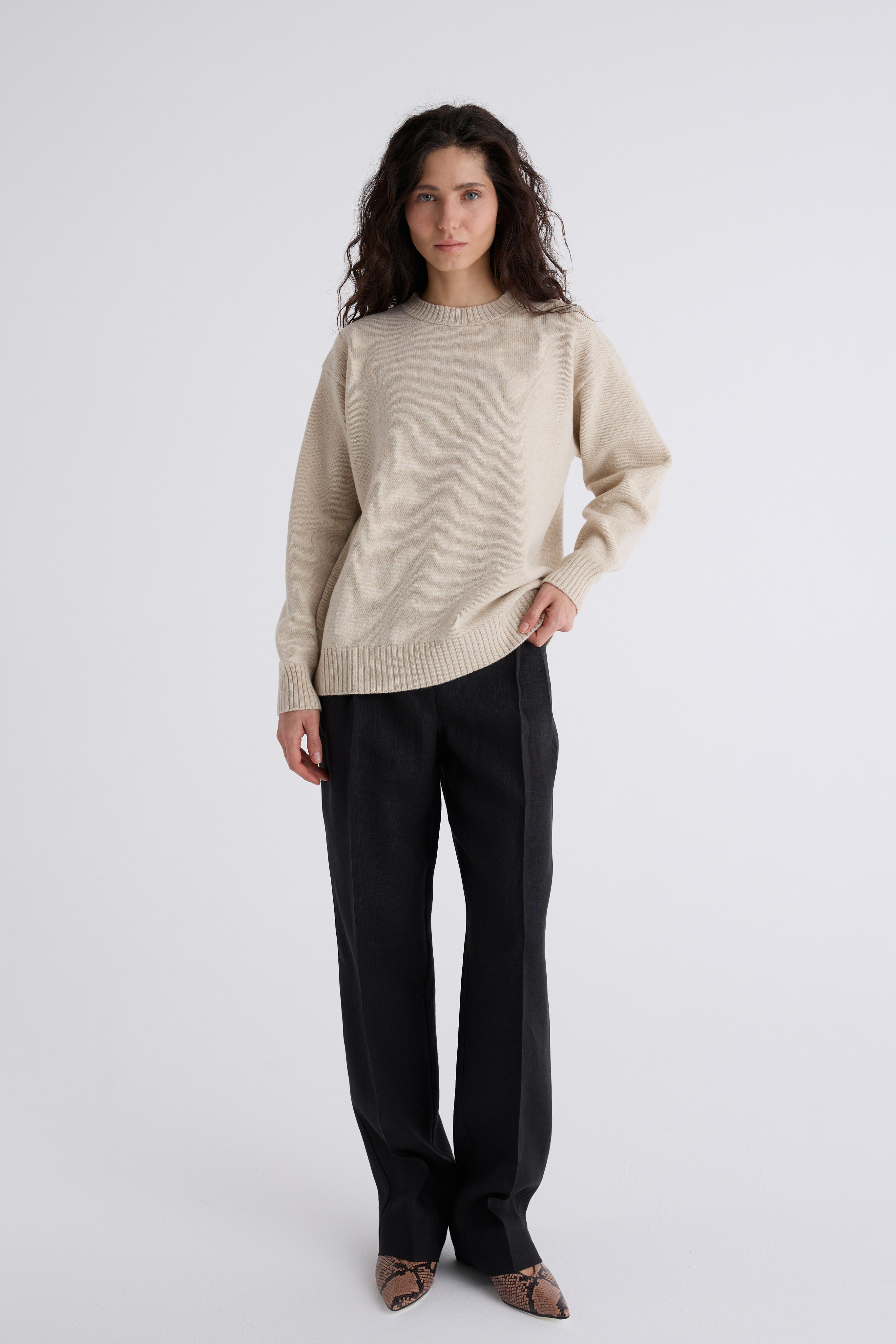 Джемпер Эмма из мериноса и кашемира. Классический джемпер, спинка и перед равной длины, ворот под горло. Плечевой шов отнесён на спинку и имеет декоративную дорожку. Джемпер средней плотности, невероятно нежный и мягкий. Обращаем внимание: для вязаных изделий допустимо расхождение от заявленных параметров на +-3 см.
