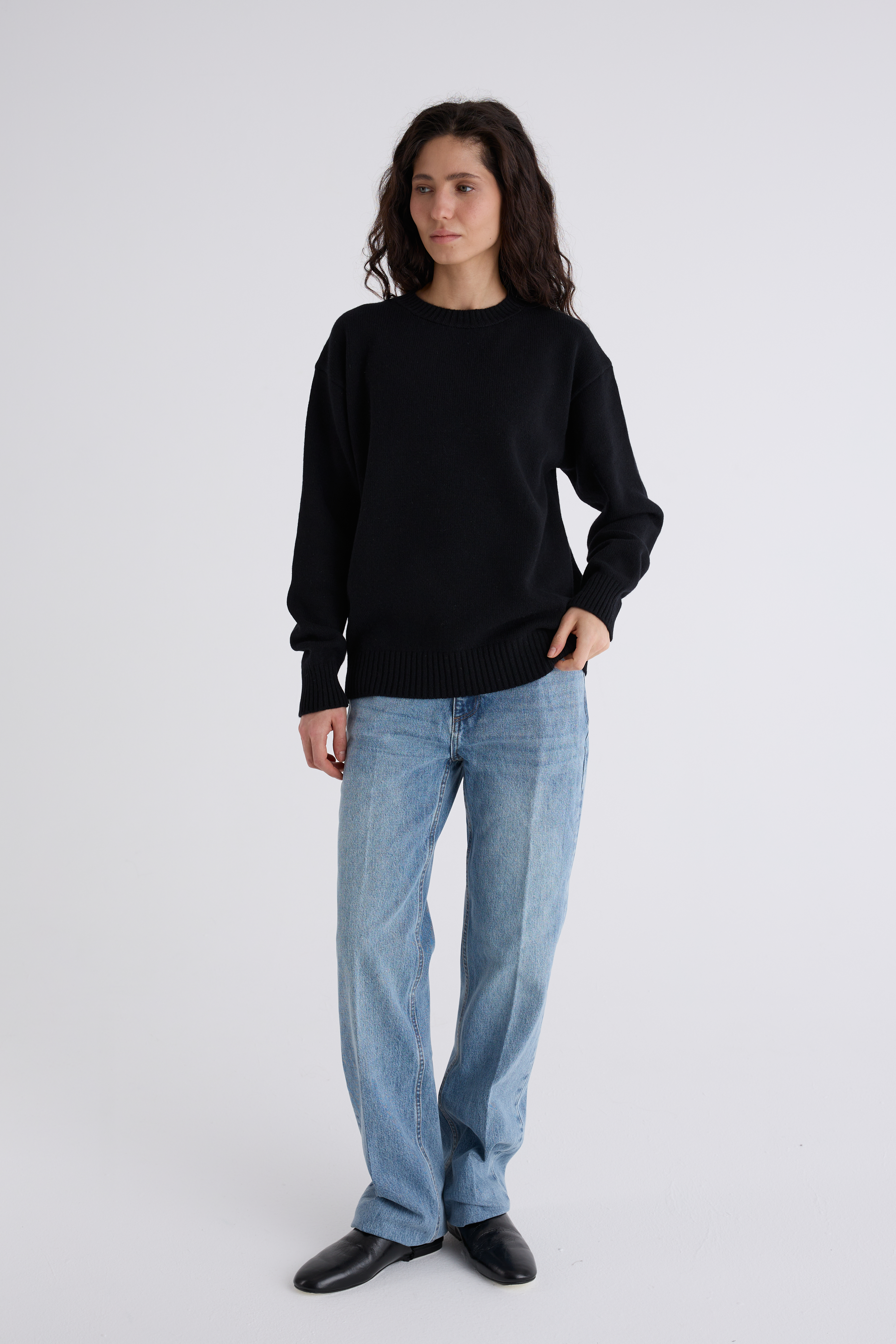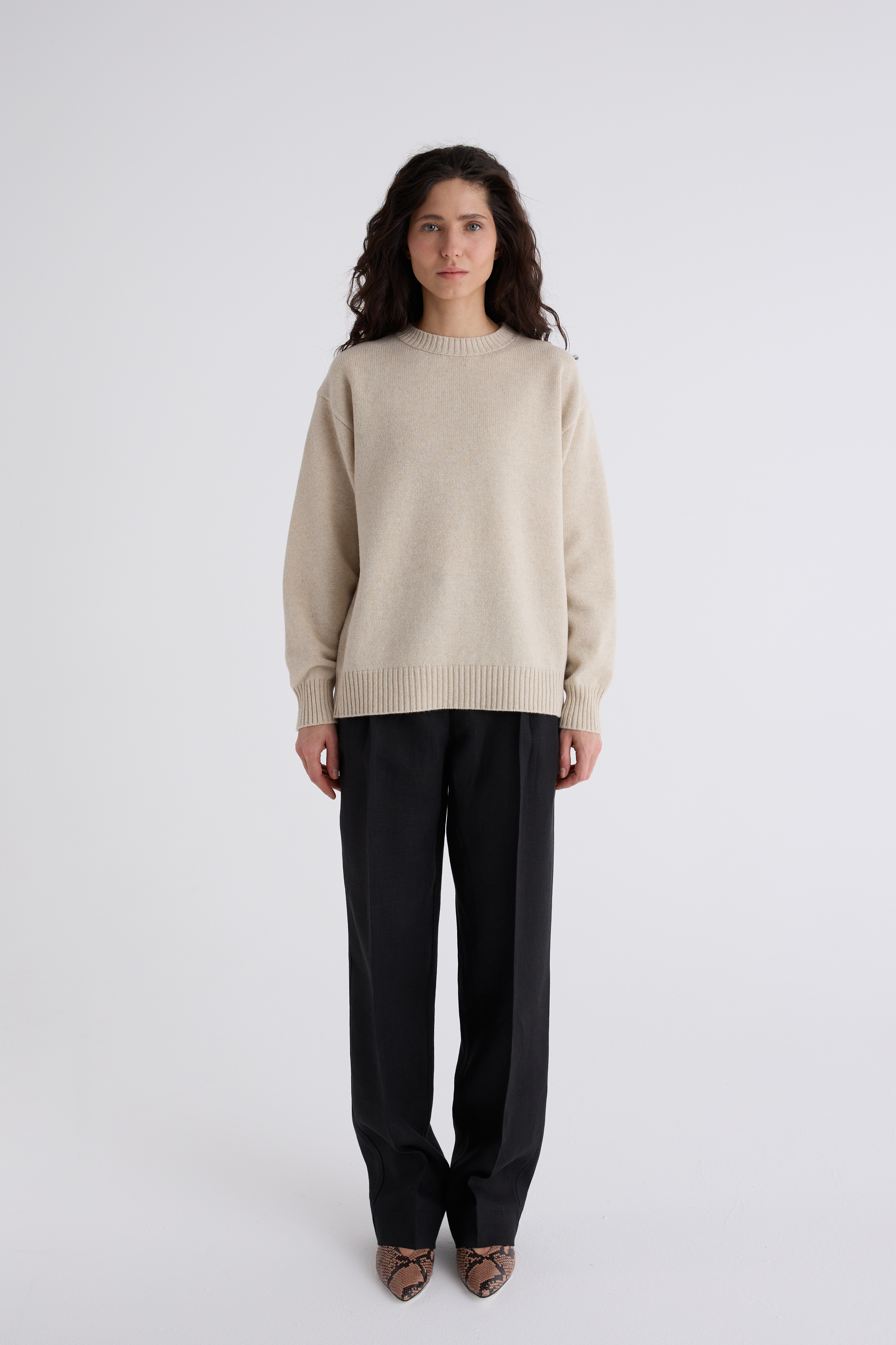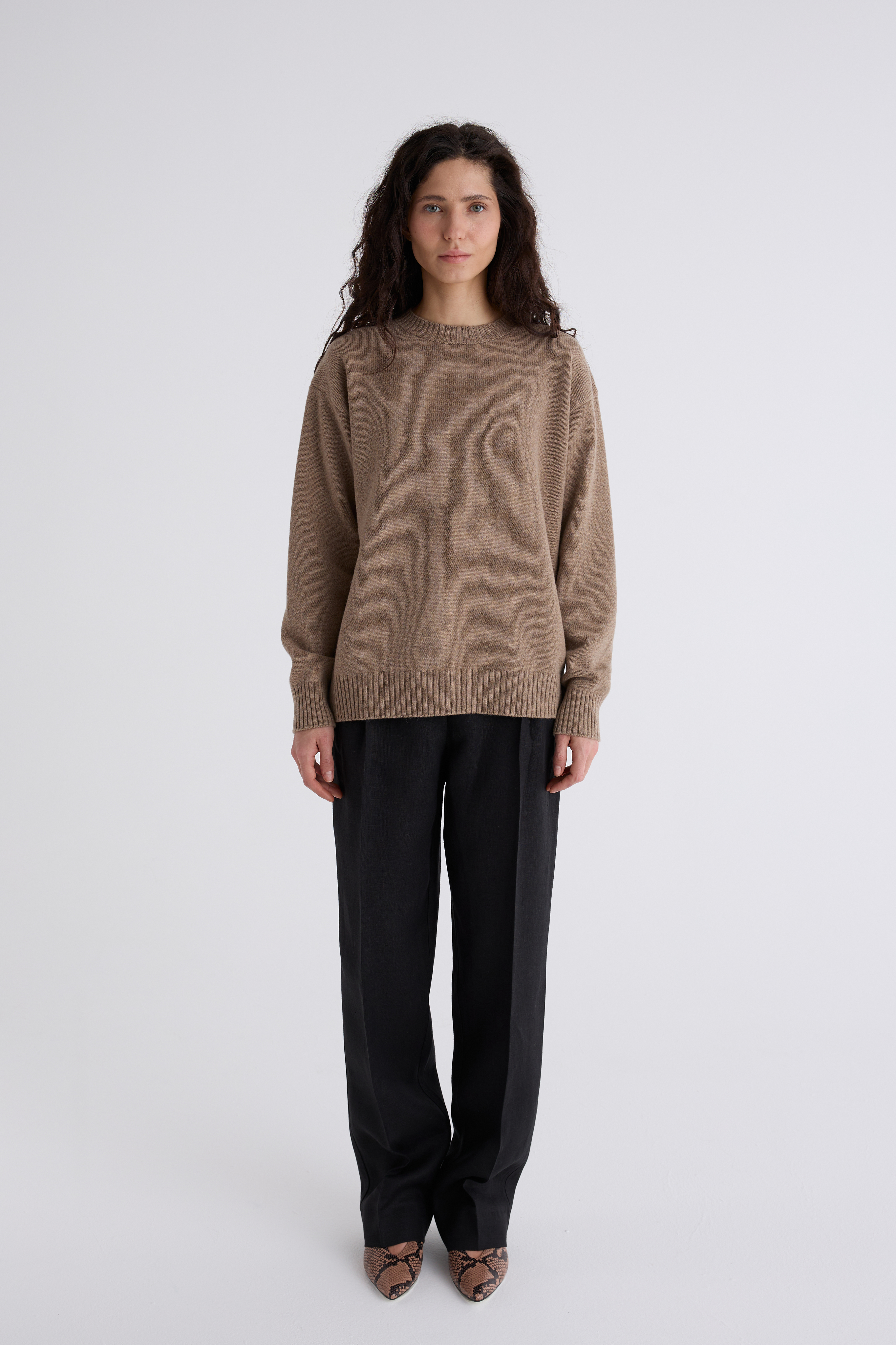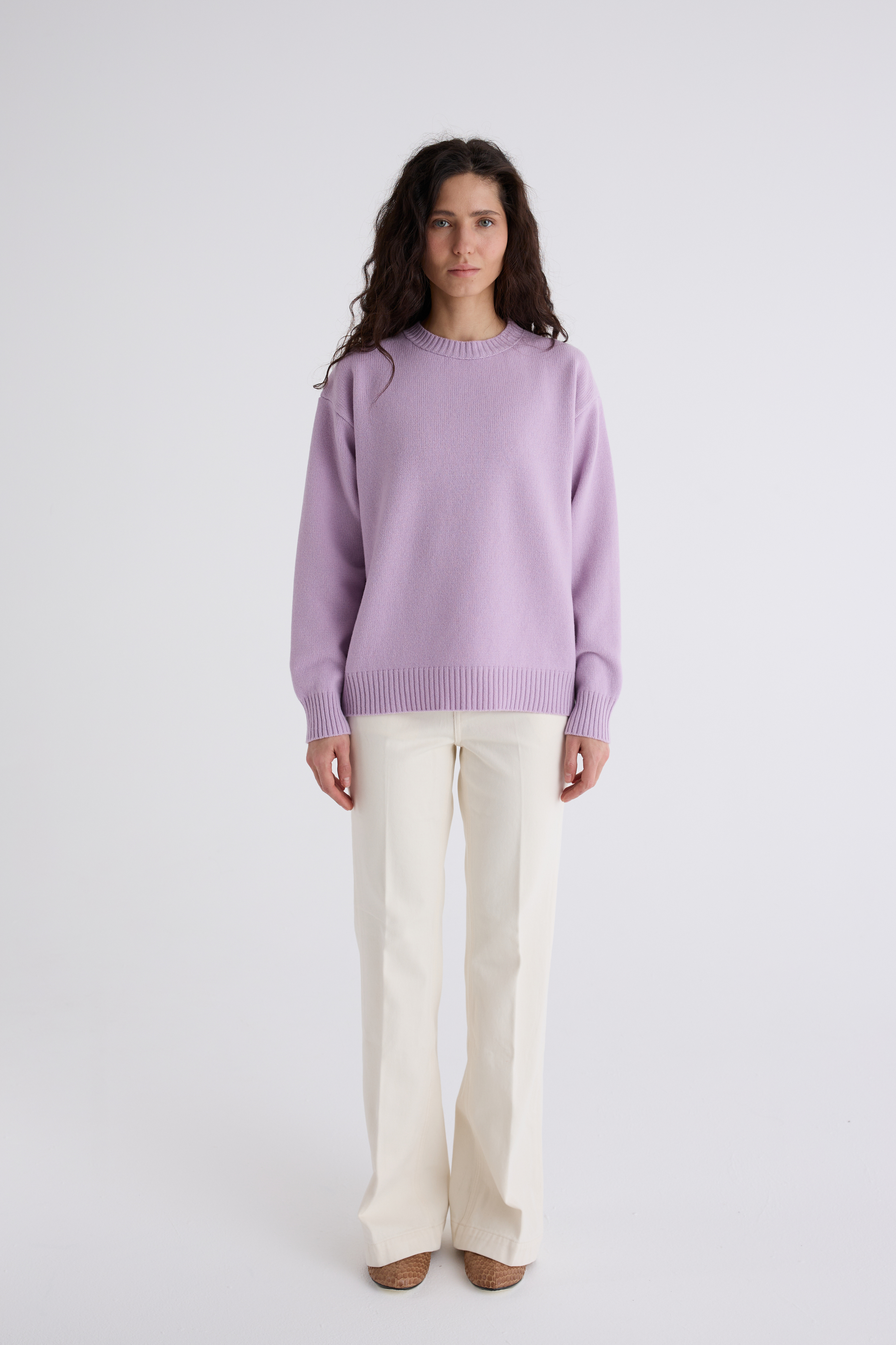 Джемпер Эмма из мериноса и кашемира. Классический джемпер, спинка и перед равной длины, ворот под горло. Плечевой шов отнесён на спинку и имеет декоративную дорожку. Джемпер средней плотности, невероятно нежный и мягкий. Обращаем внимание: для вязаных изделий допустимо расхождение от заявленных параметров на +-3 см.
