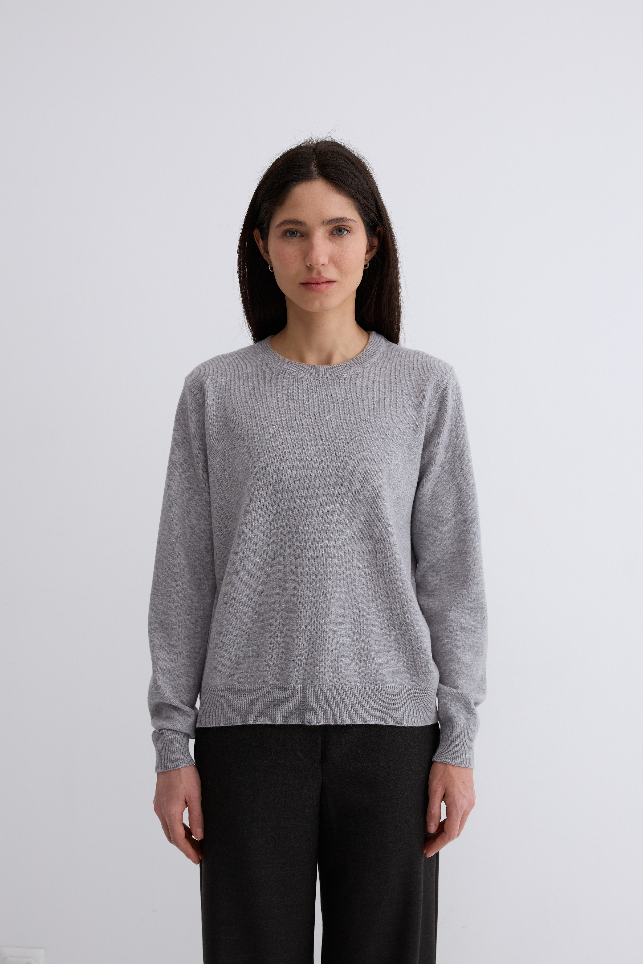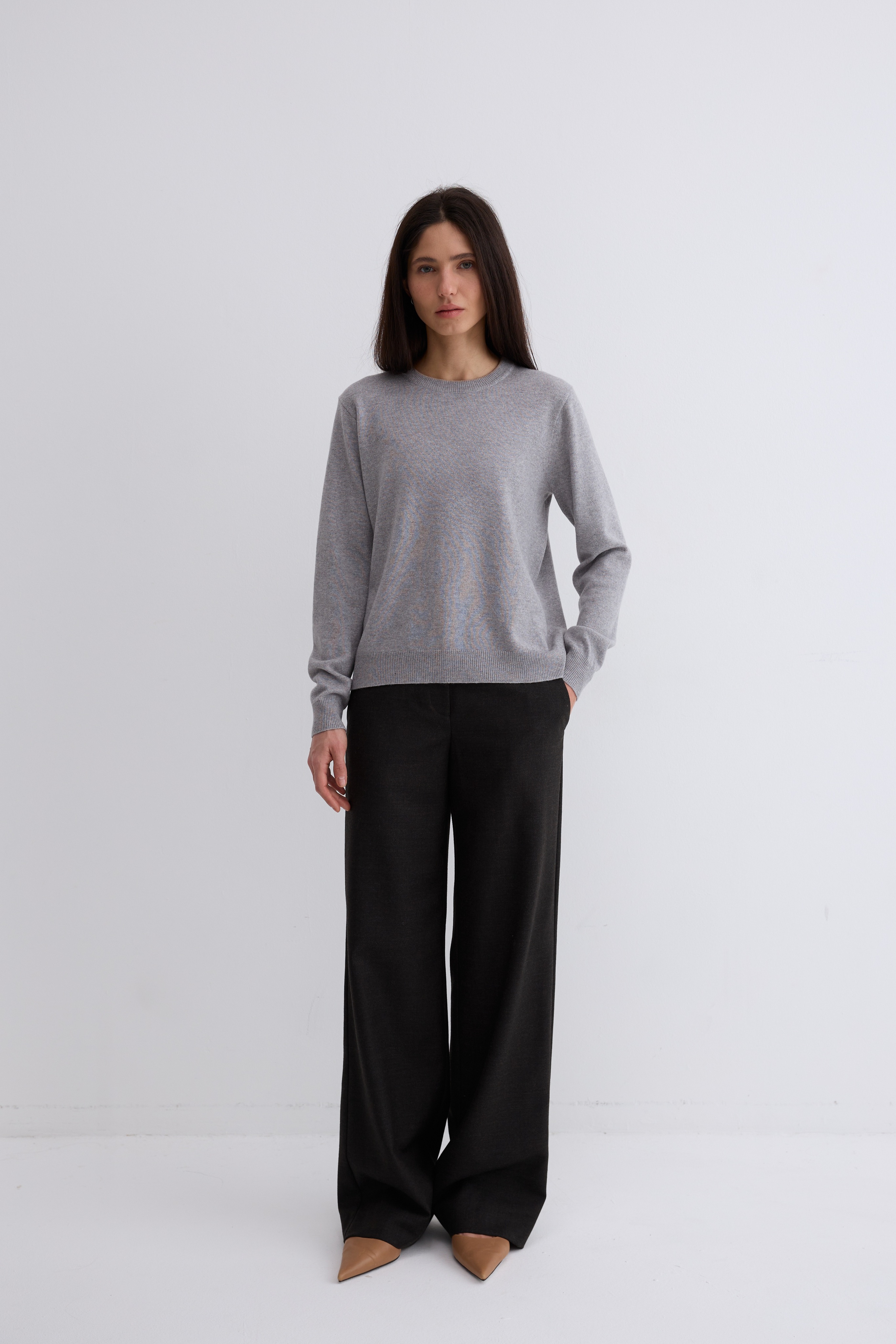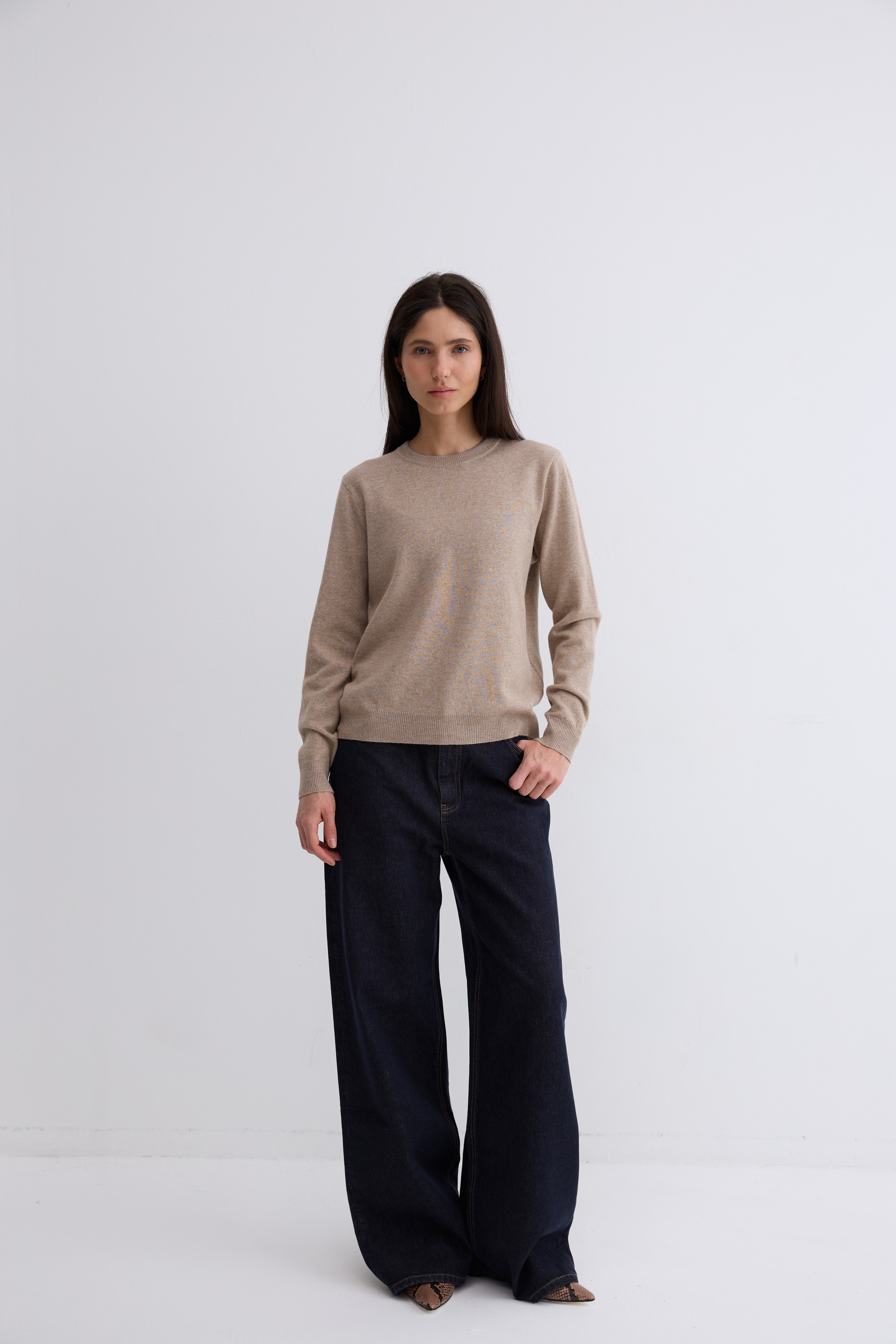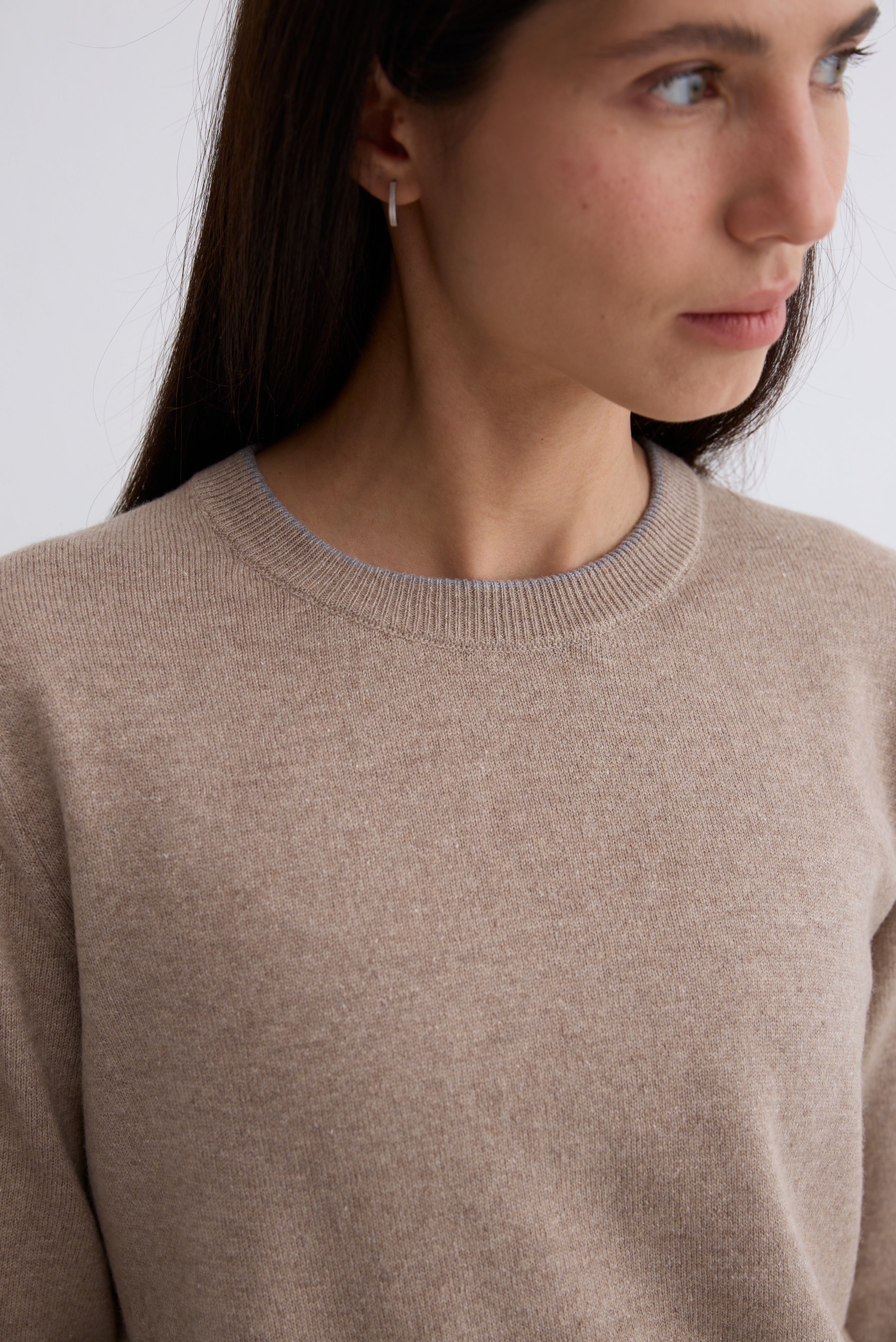 Джемпер Марта из премиальной итальянской пряжи. Деликатная декоративная отделка бейки ворота другим цветом, классический прямой фасон. Джемпер комфортной длины, будет идеален для того чтобы носить навыпуск и запрятывая.
