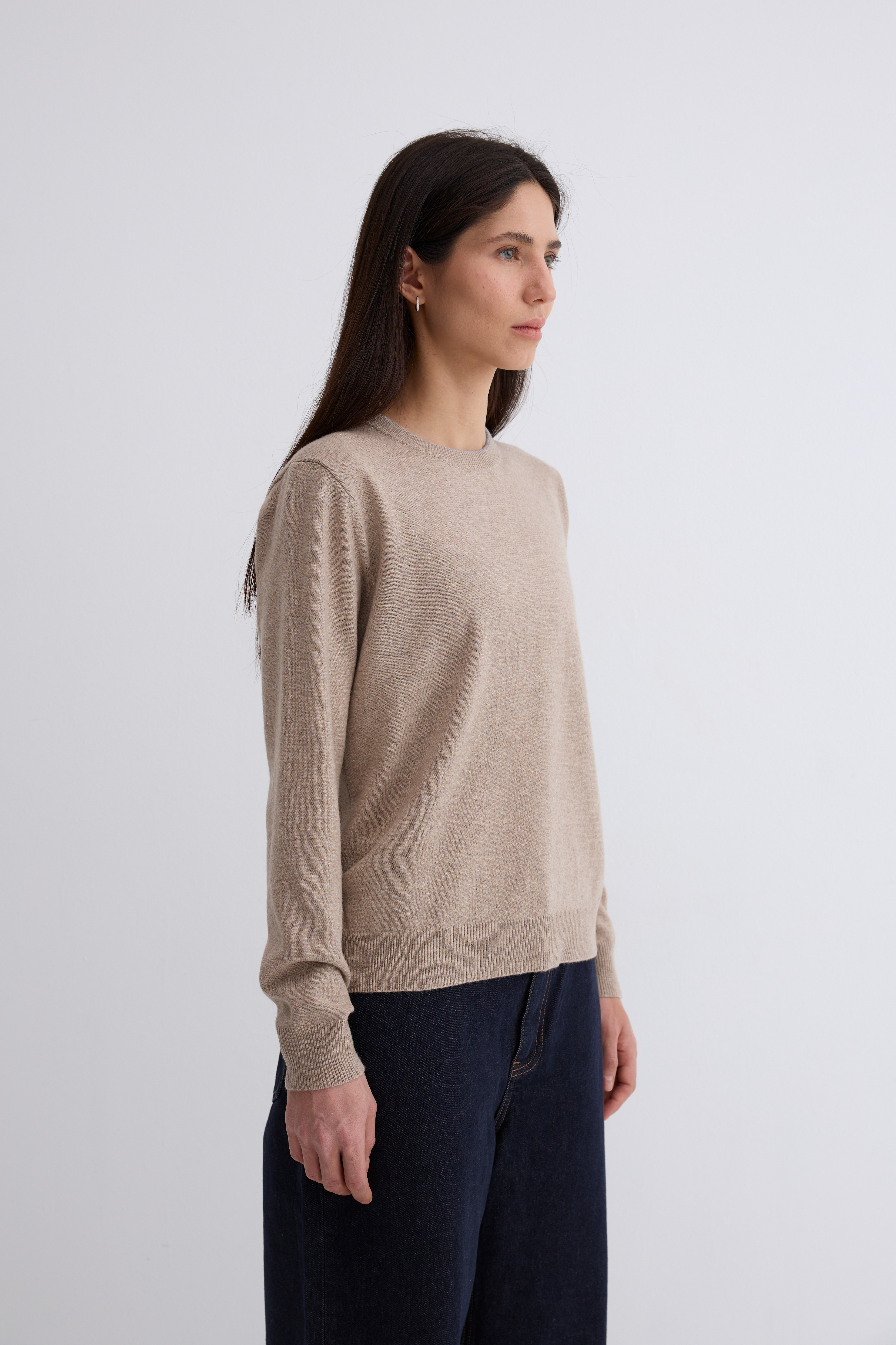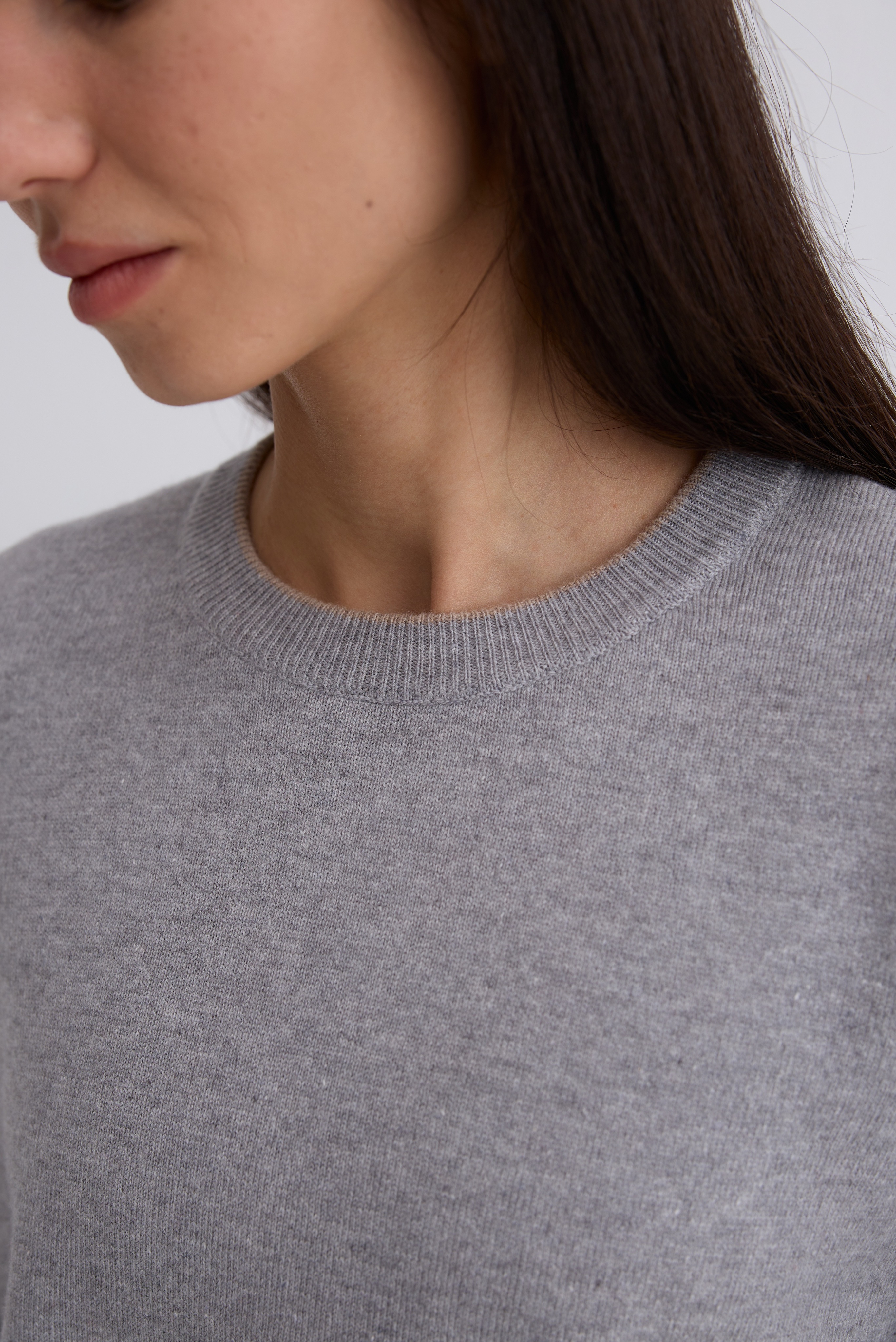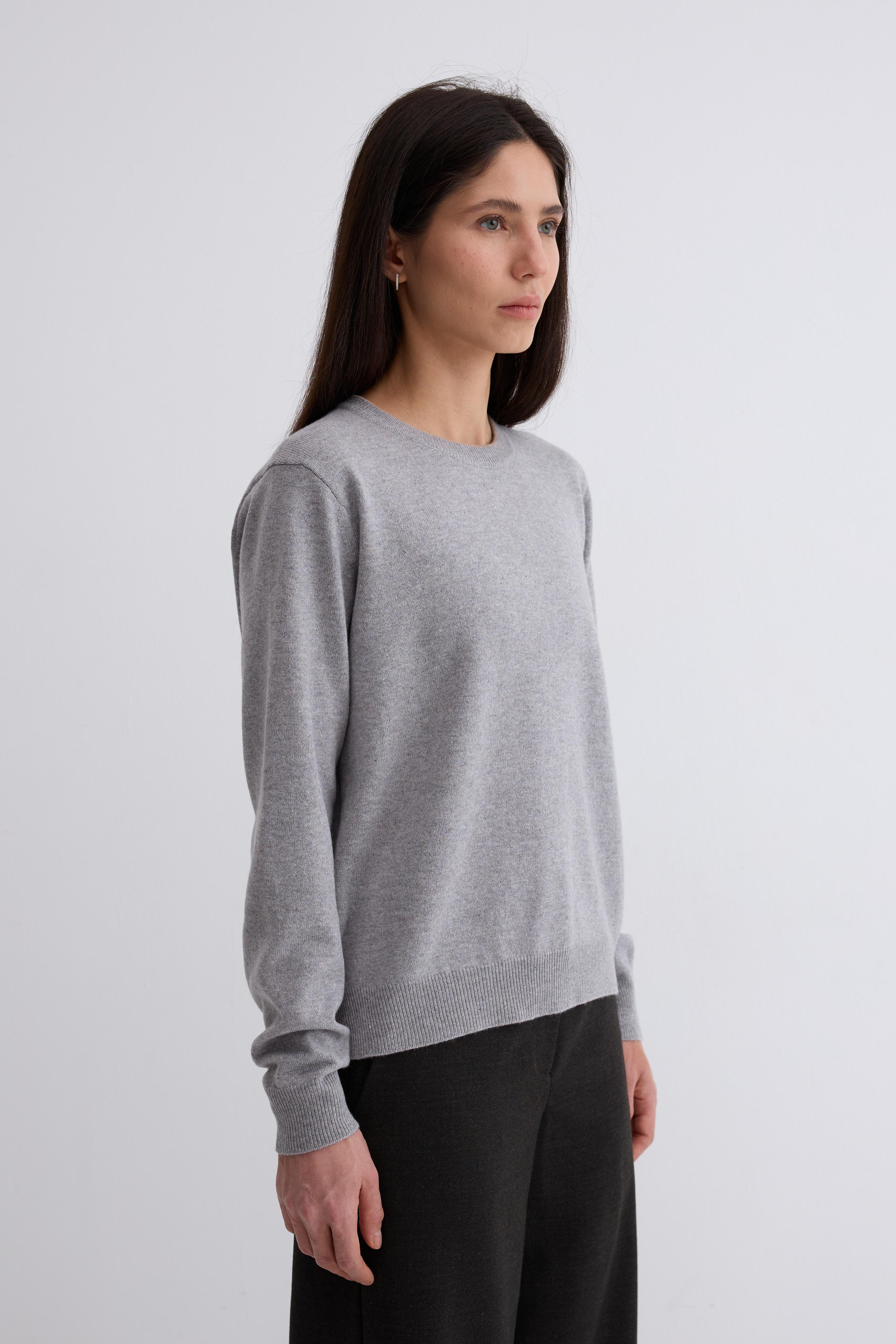 Джемпер Марта из премиальной итальянской пряжи. Деликатная декоративная отделка бейки ворота другим цветом, классический прямой фасон. Джемпер комфортной длины, будет идеален для того чтобы носить навыпуск и запрятывая.