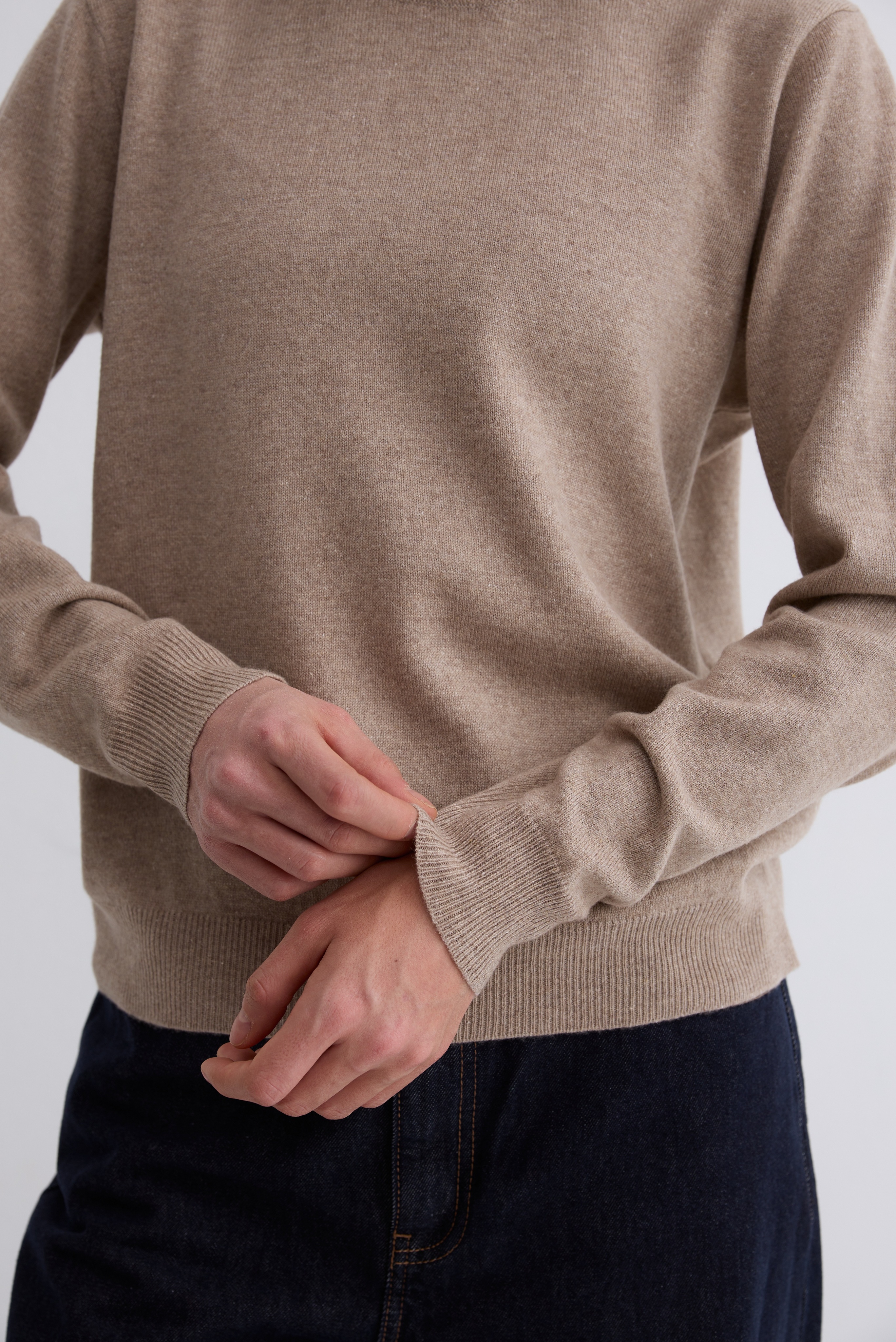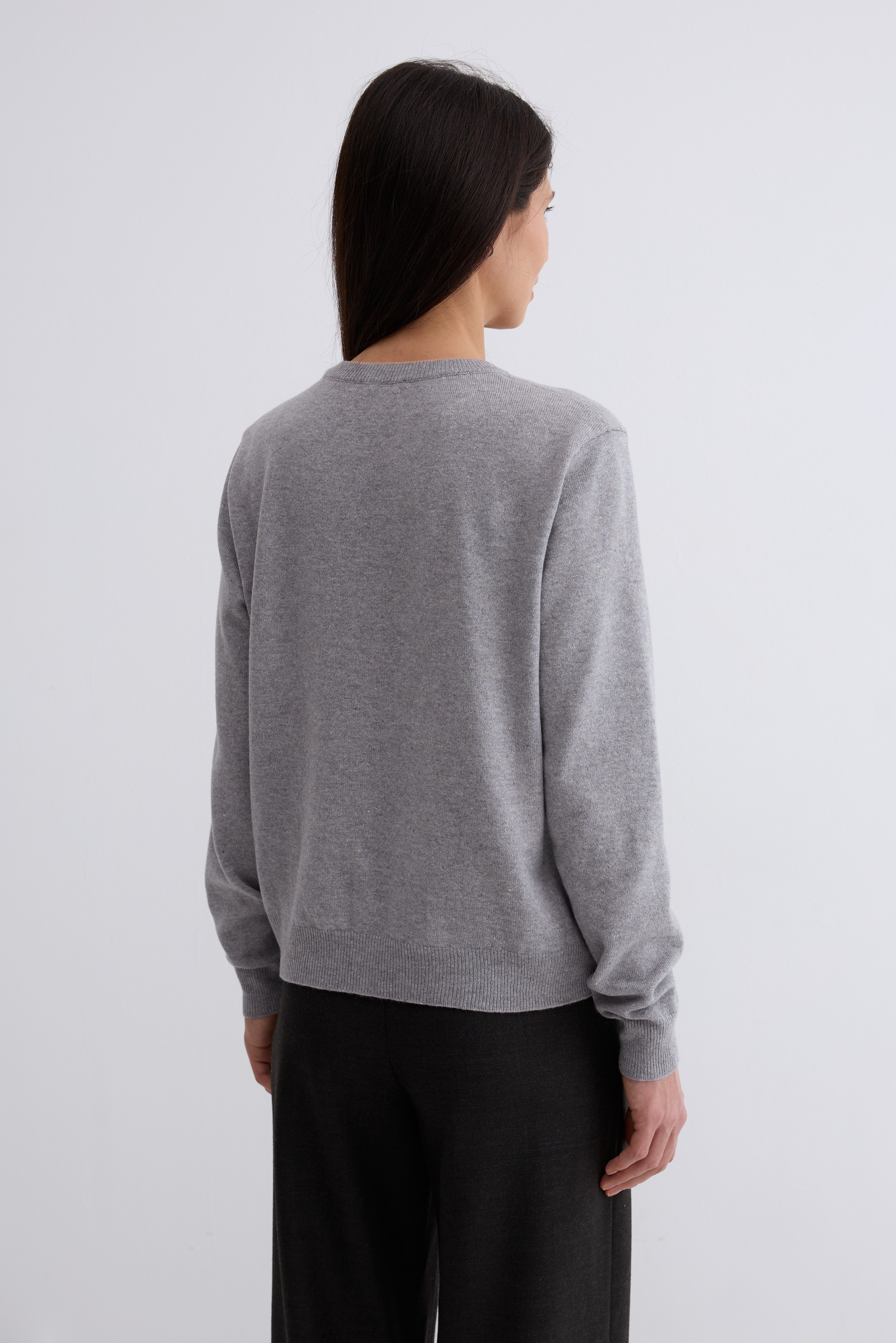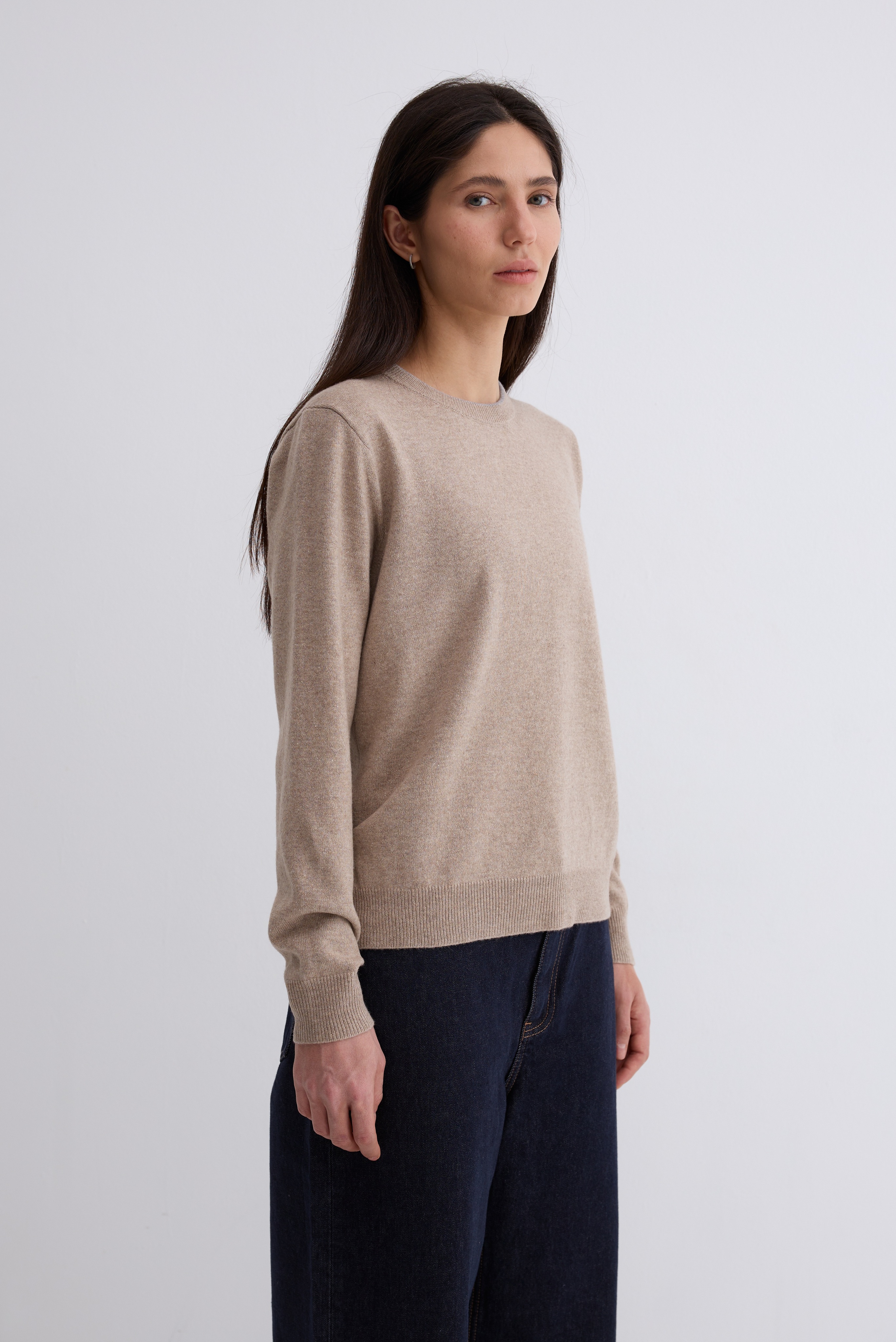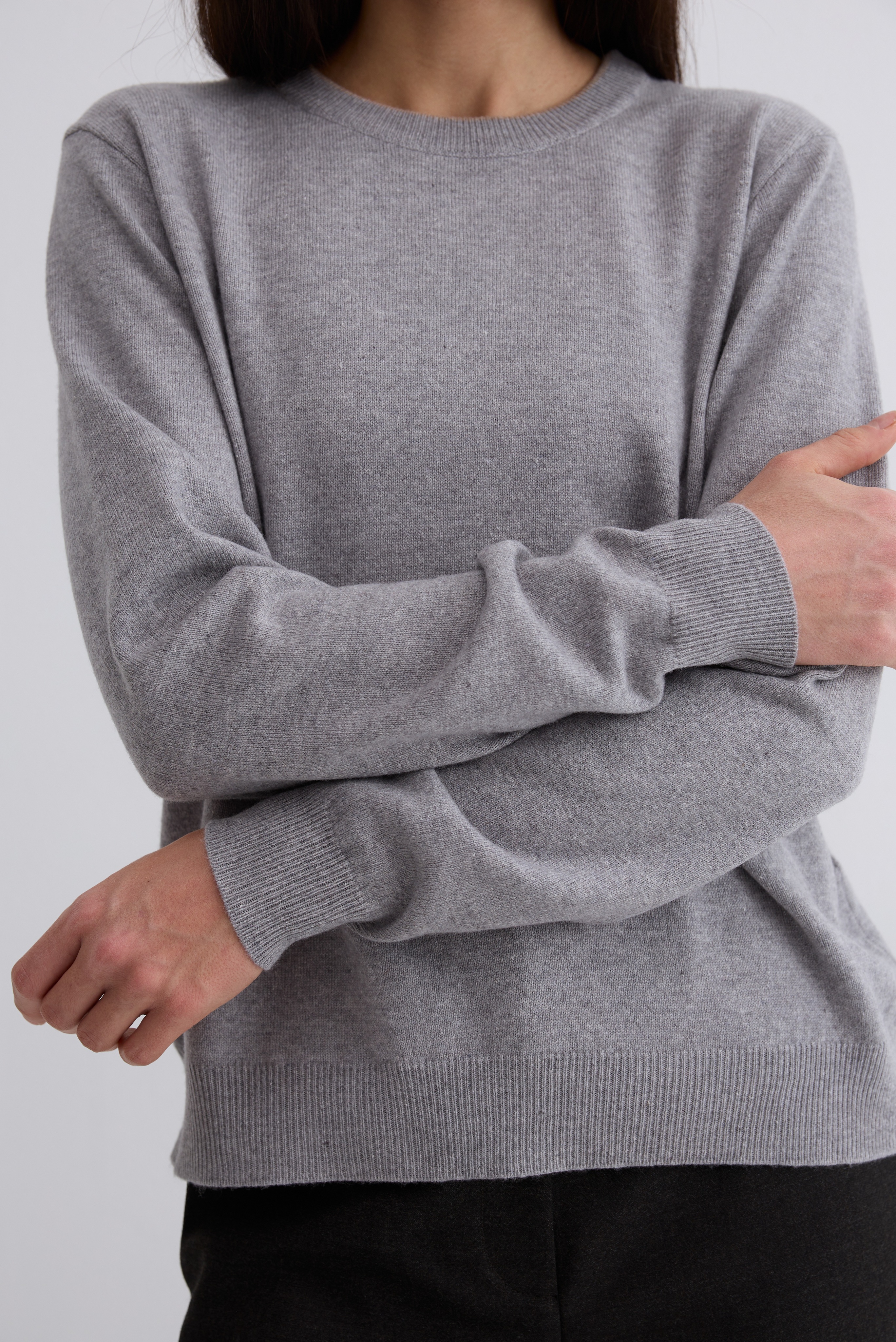Джемпер Марта из премиальной итальянской пряжи. Деликатная декоративная отделка бейки ворота другим цветом, классический прямой фасон. Джемпер комфортной длины, будет идеален для того чтобы носить навыпуск и запрятывая.