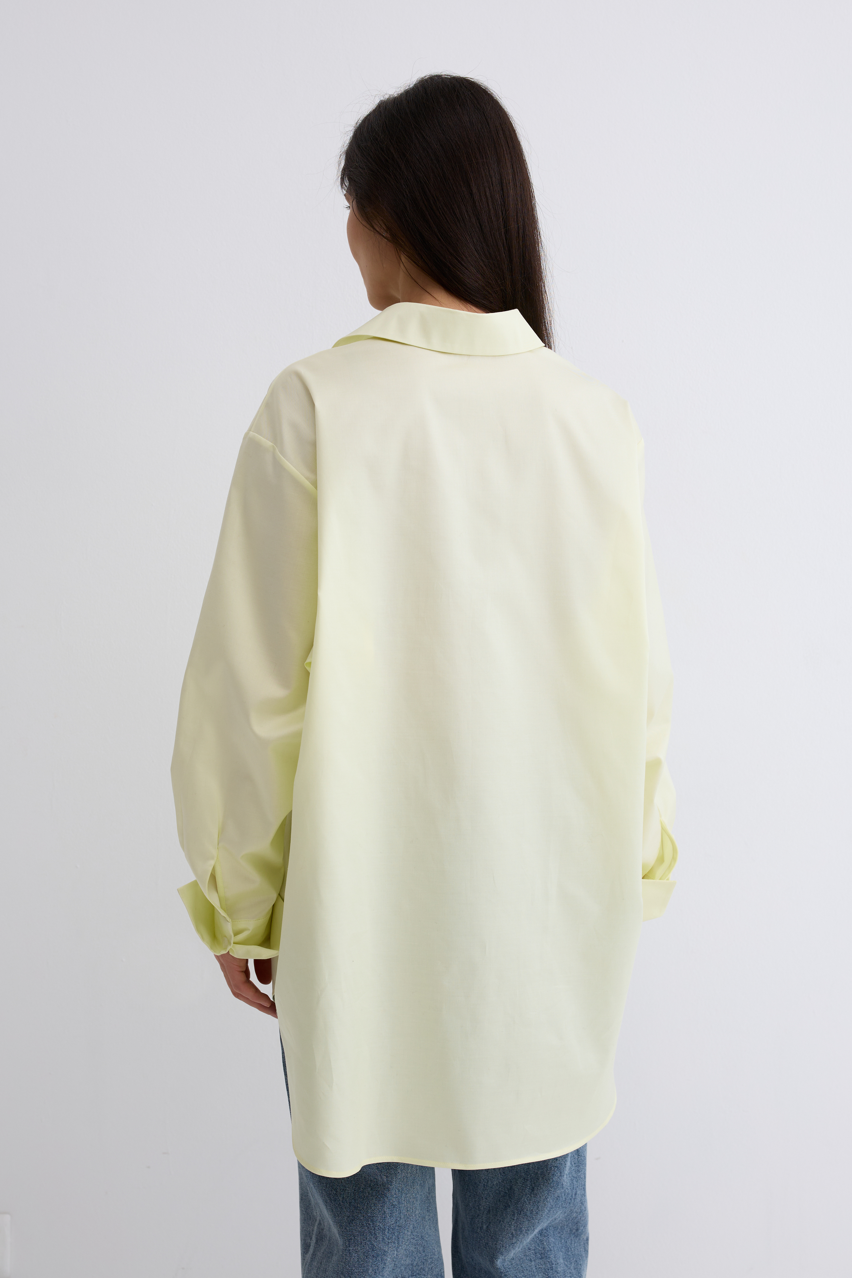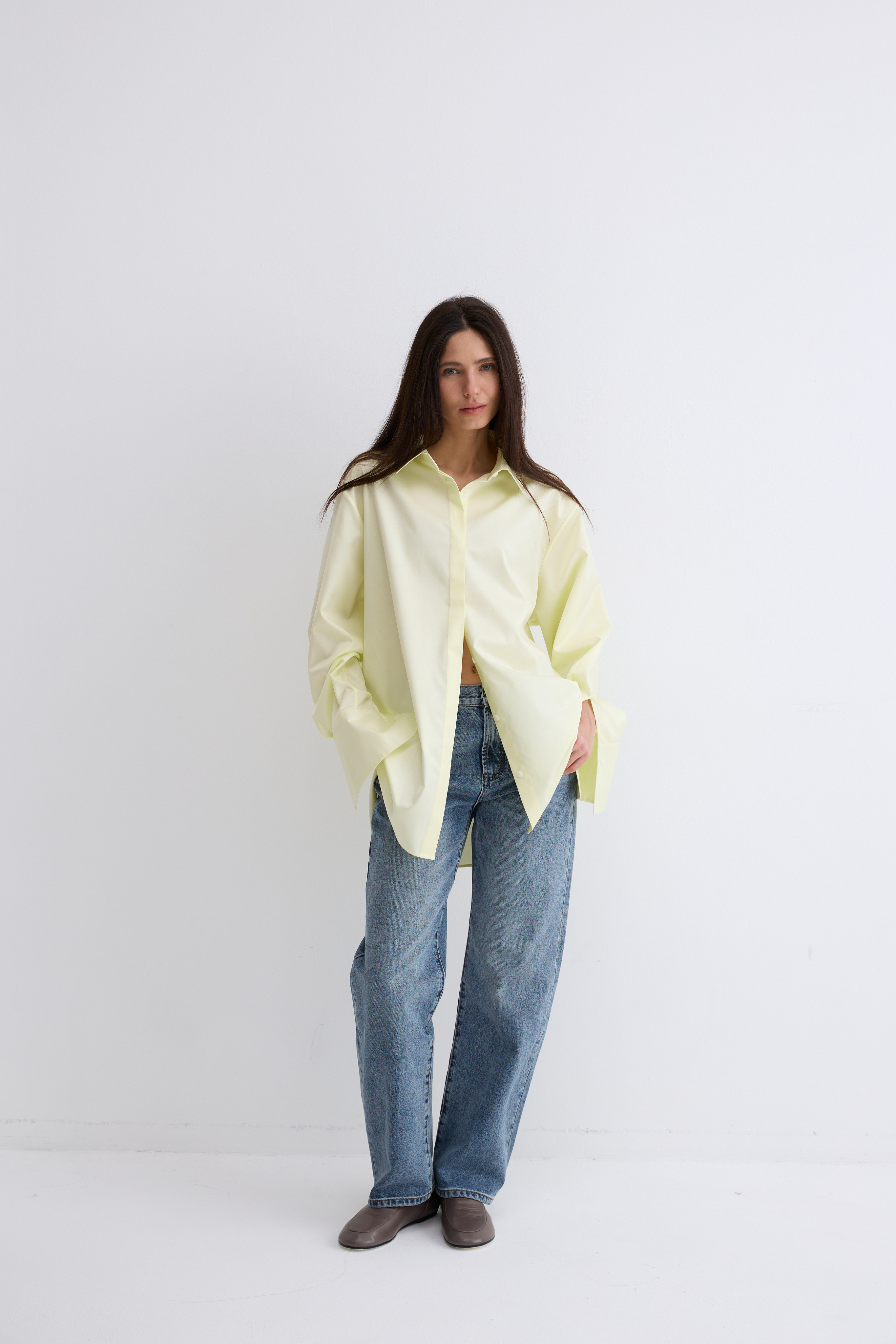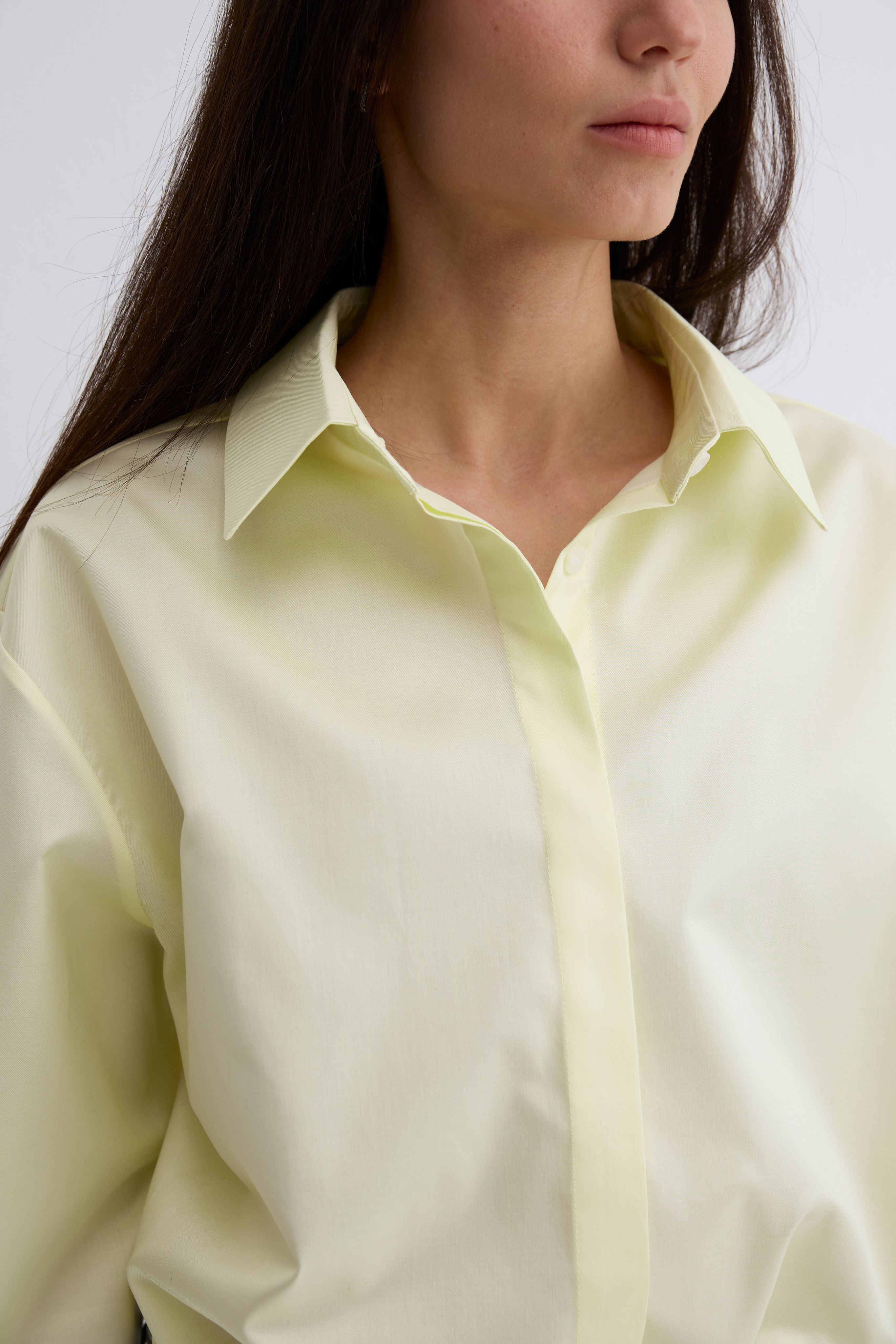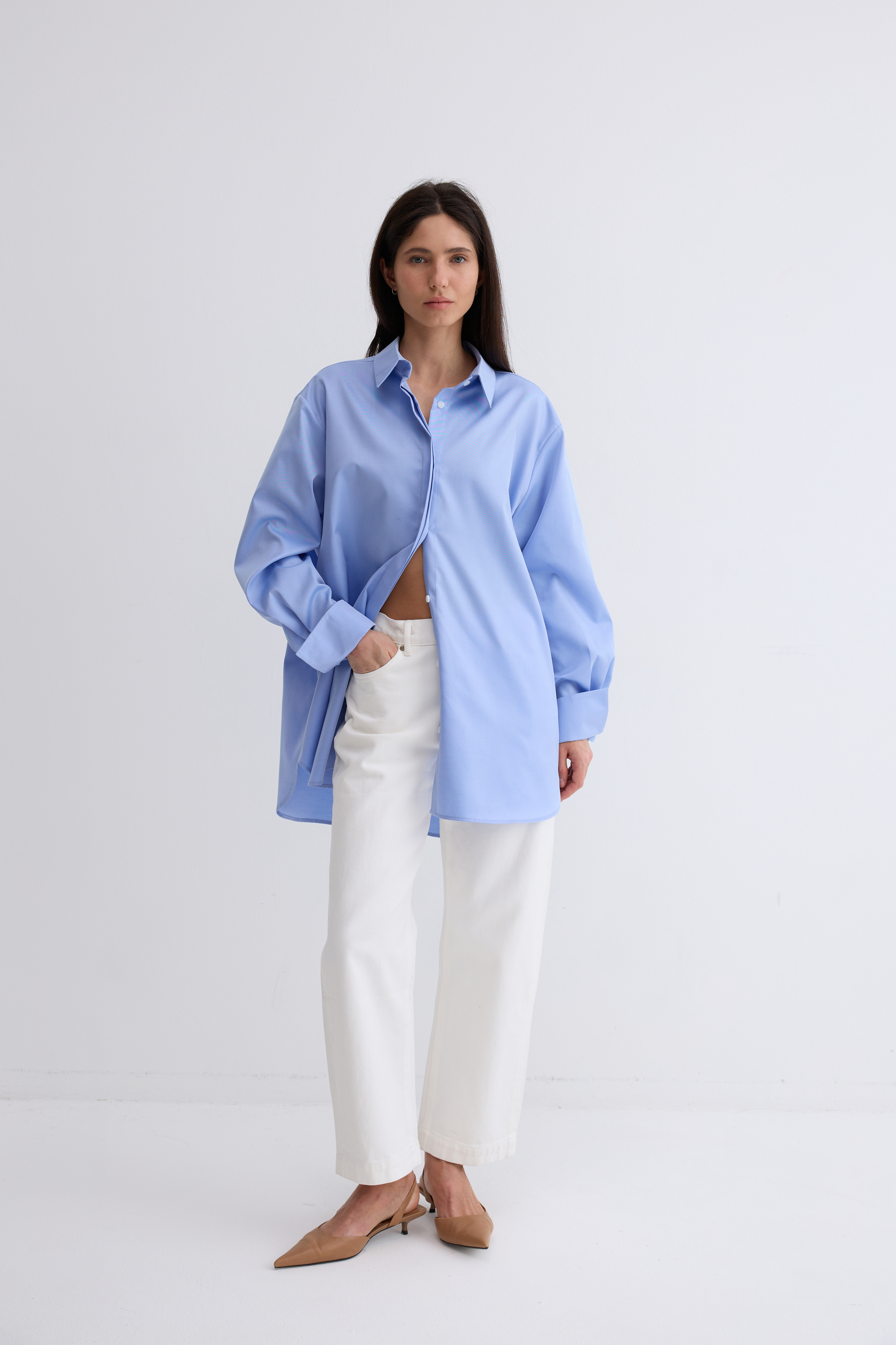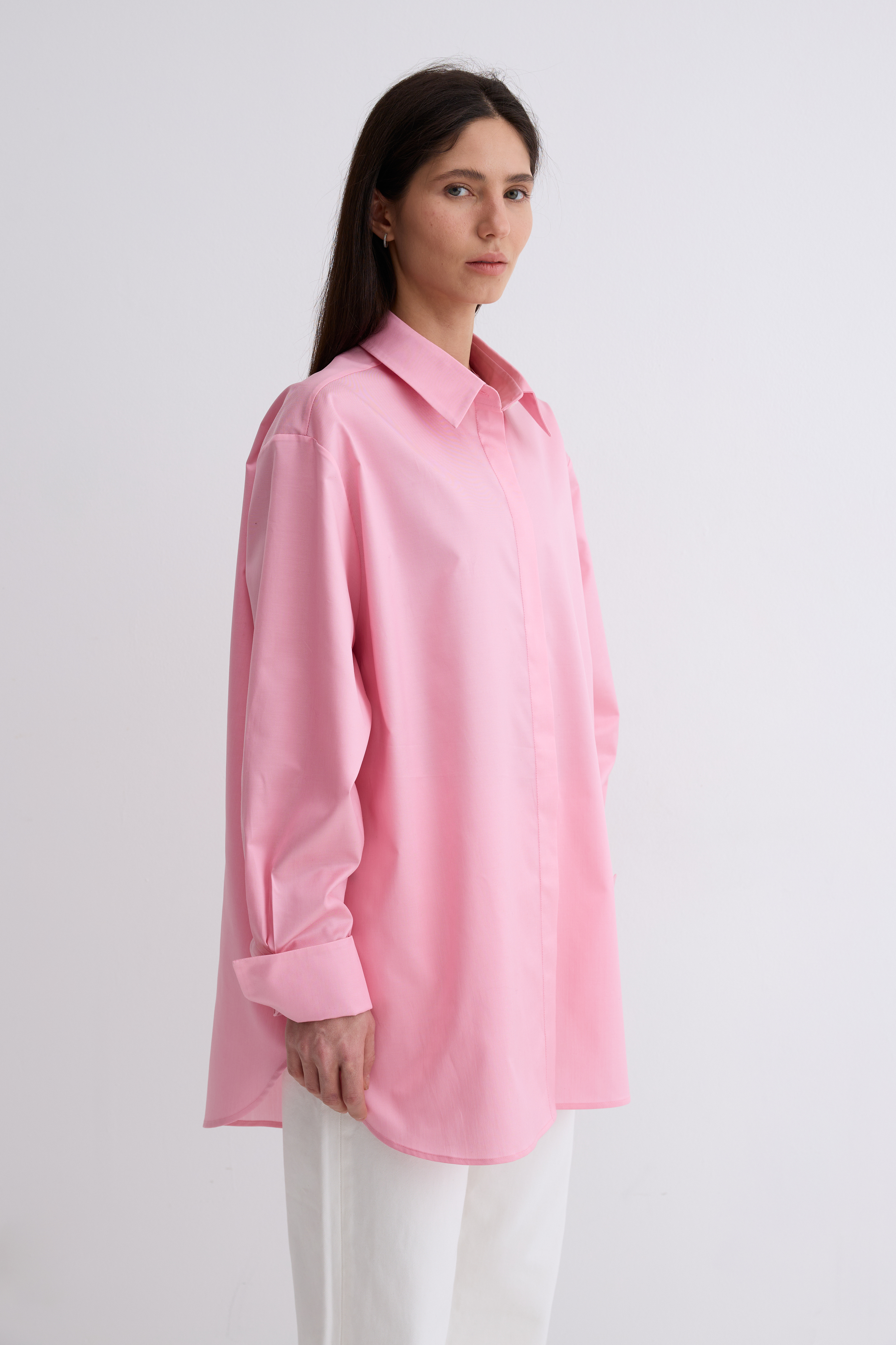Рубашка Кира из 100% хлопка. Объемная акцентная рубашка. Держит форму, не просвечивает. Закрытая планка не будет привлекать внимание к пуговицам и позволит добавить в образ любые аксессуары. Широкие манжеты, которые можно оставить такими или сделать классический вариант подвернув их.