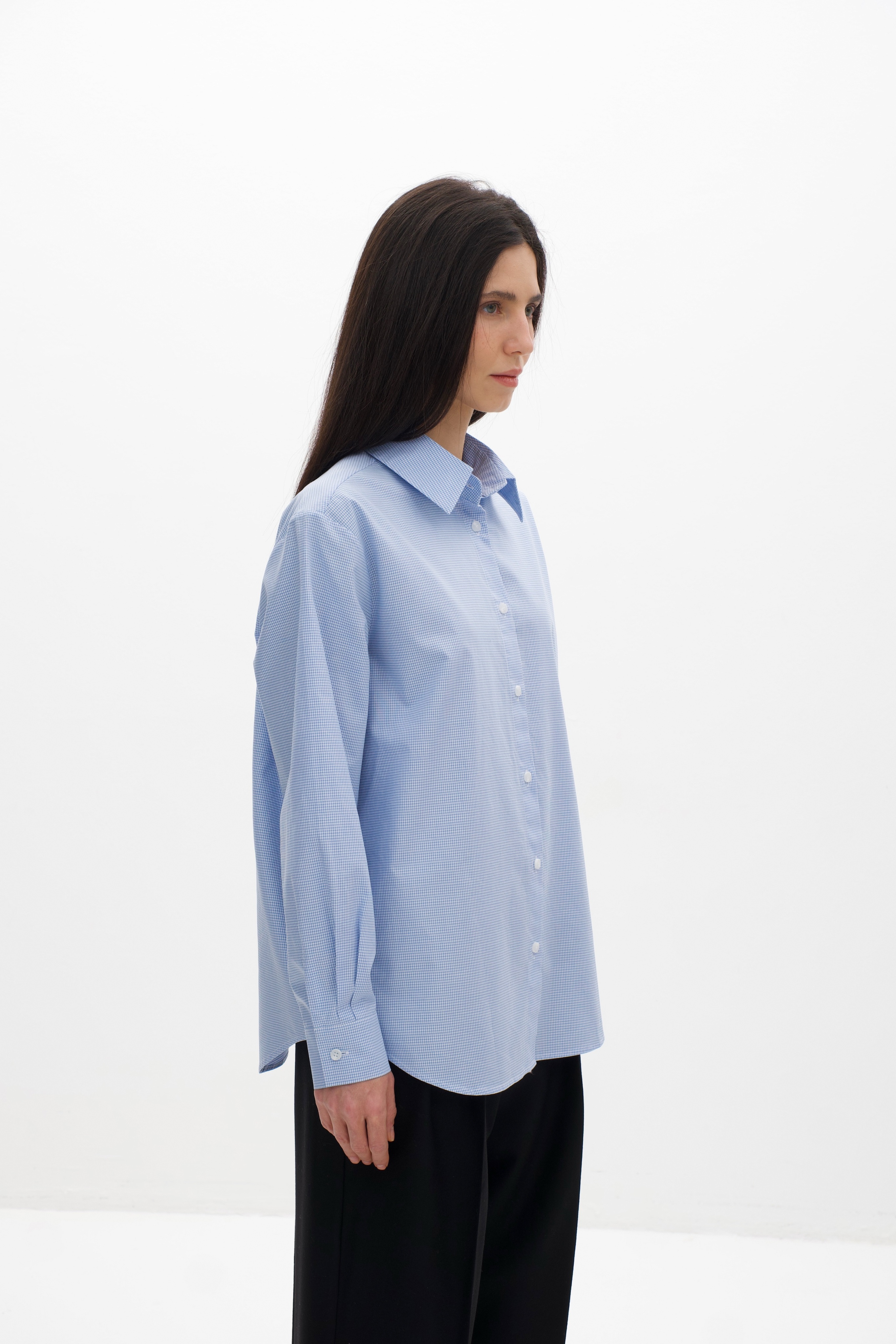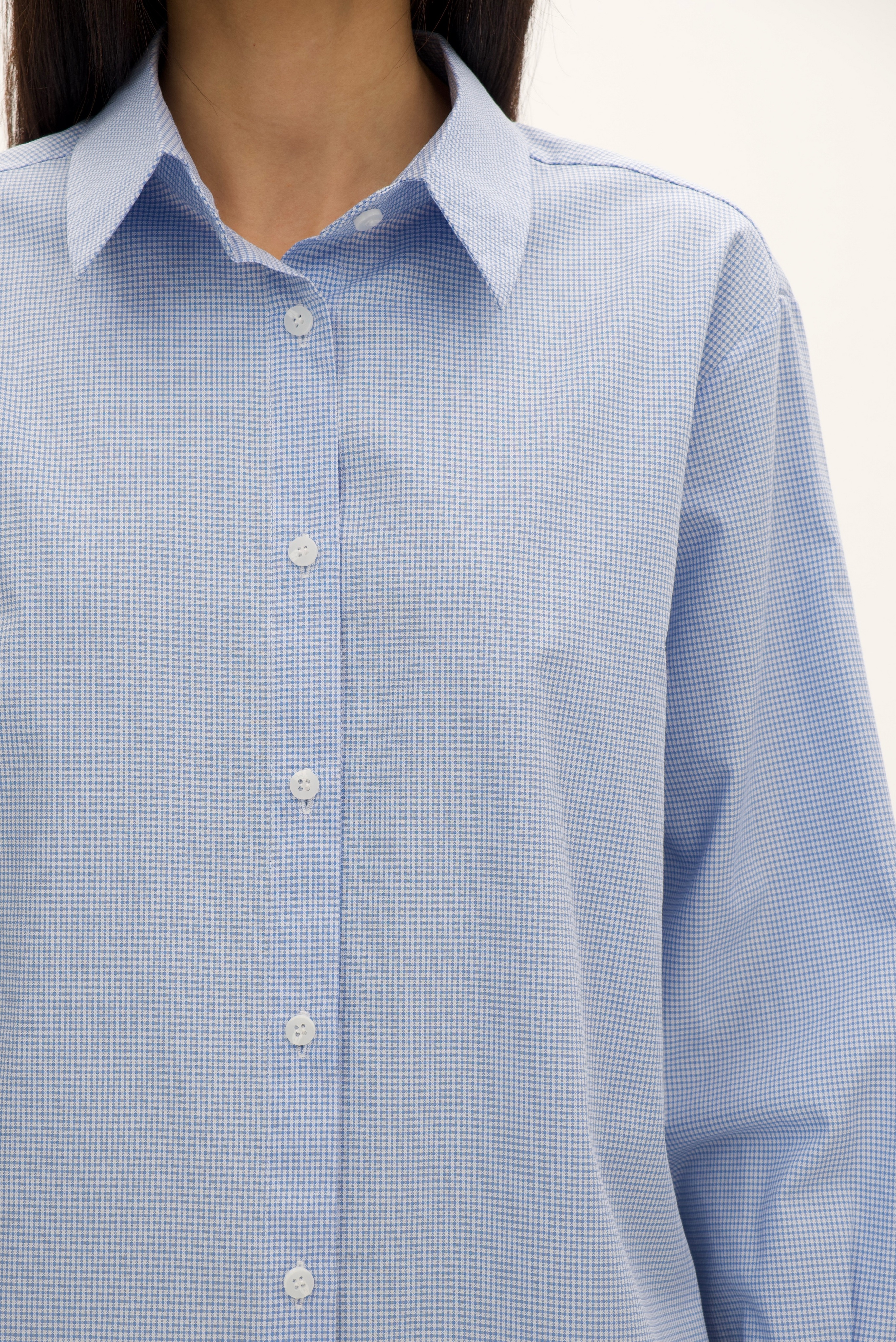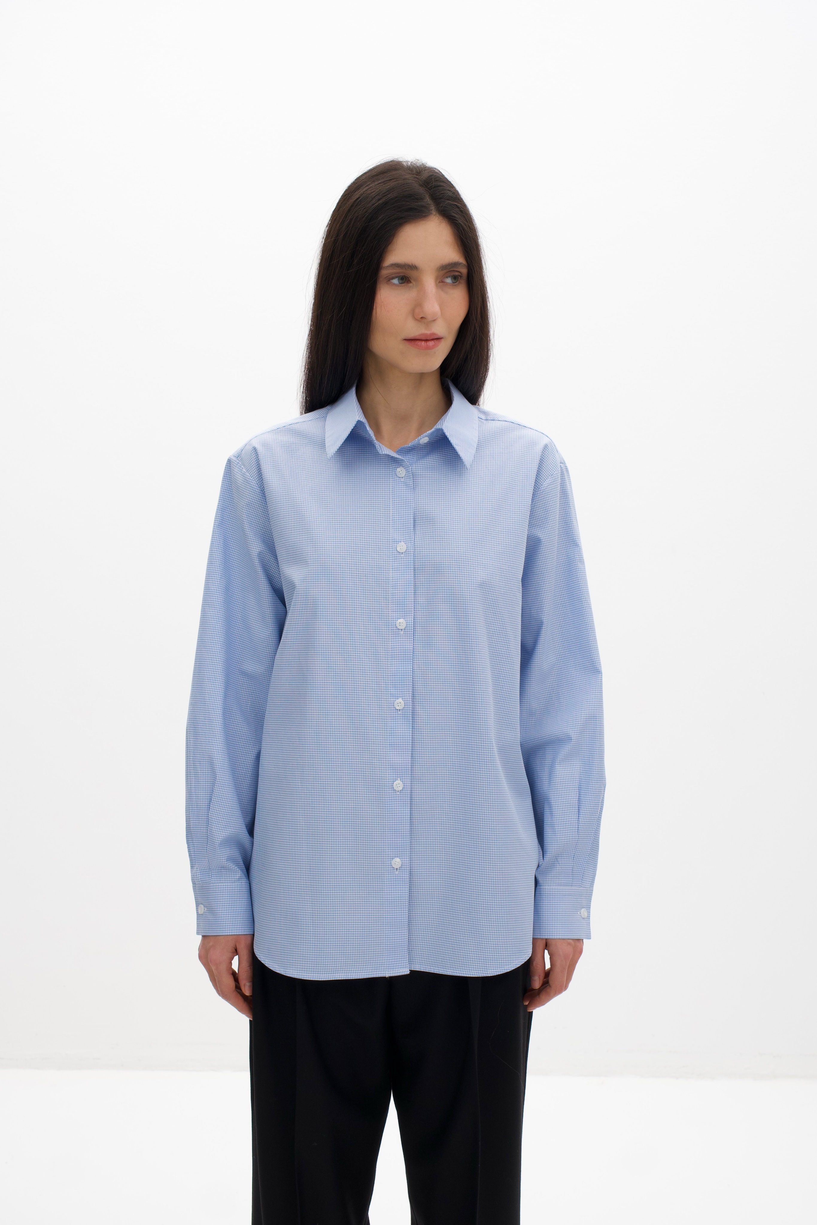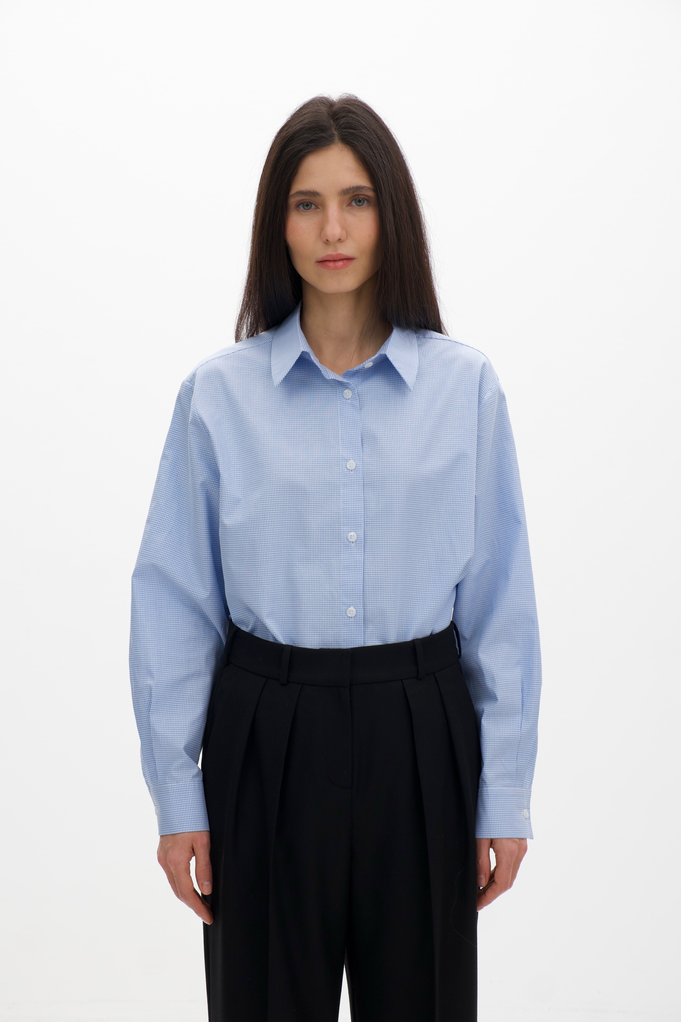 Рубашка Sky из хлопка 100%. Хлопок плотный, отлично держит форму. Не просвечивает. Открытая планка.