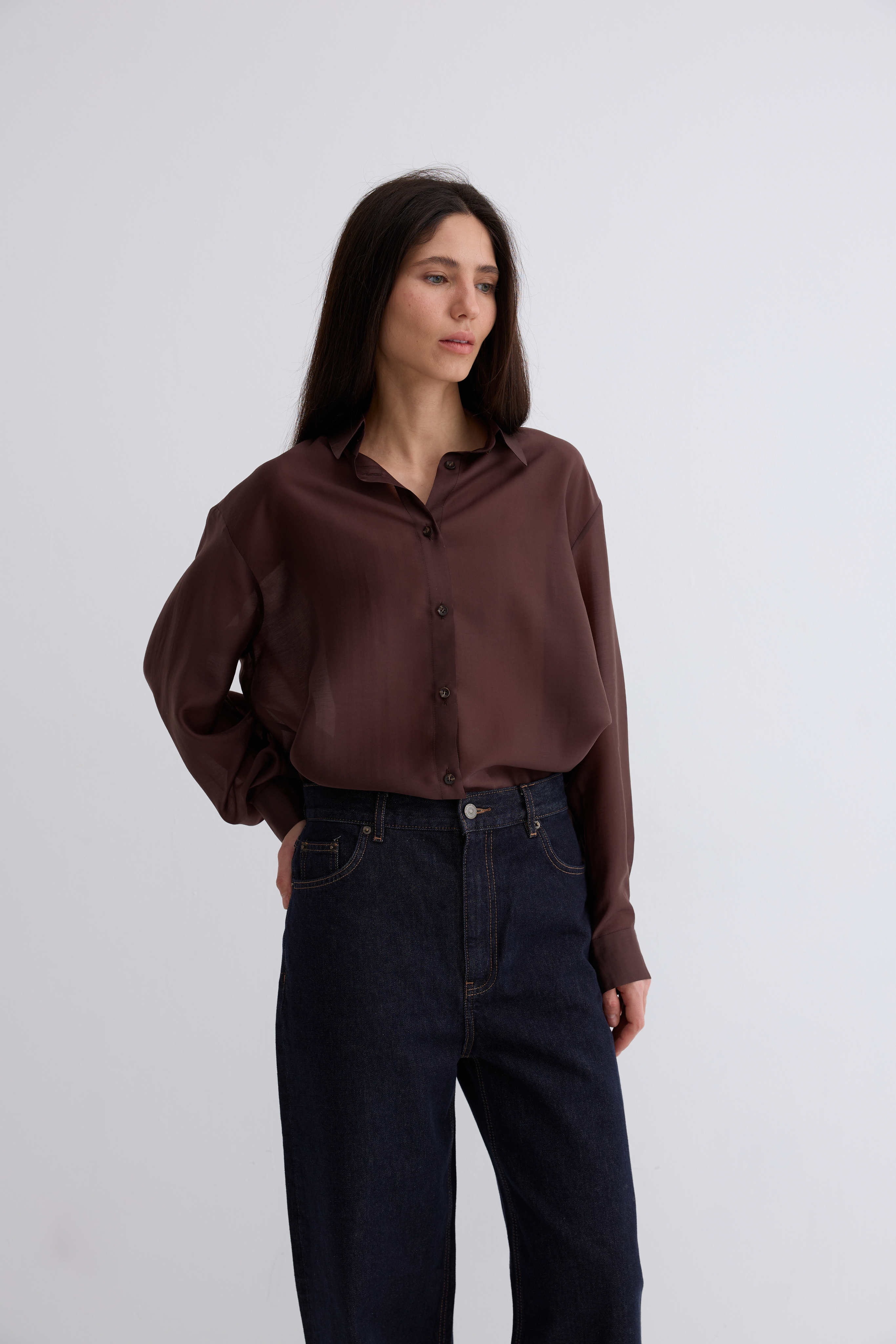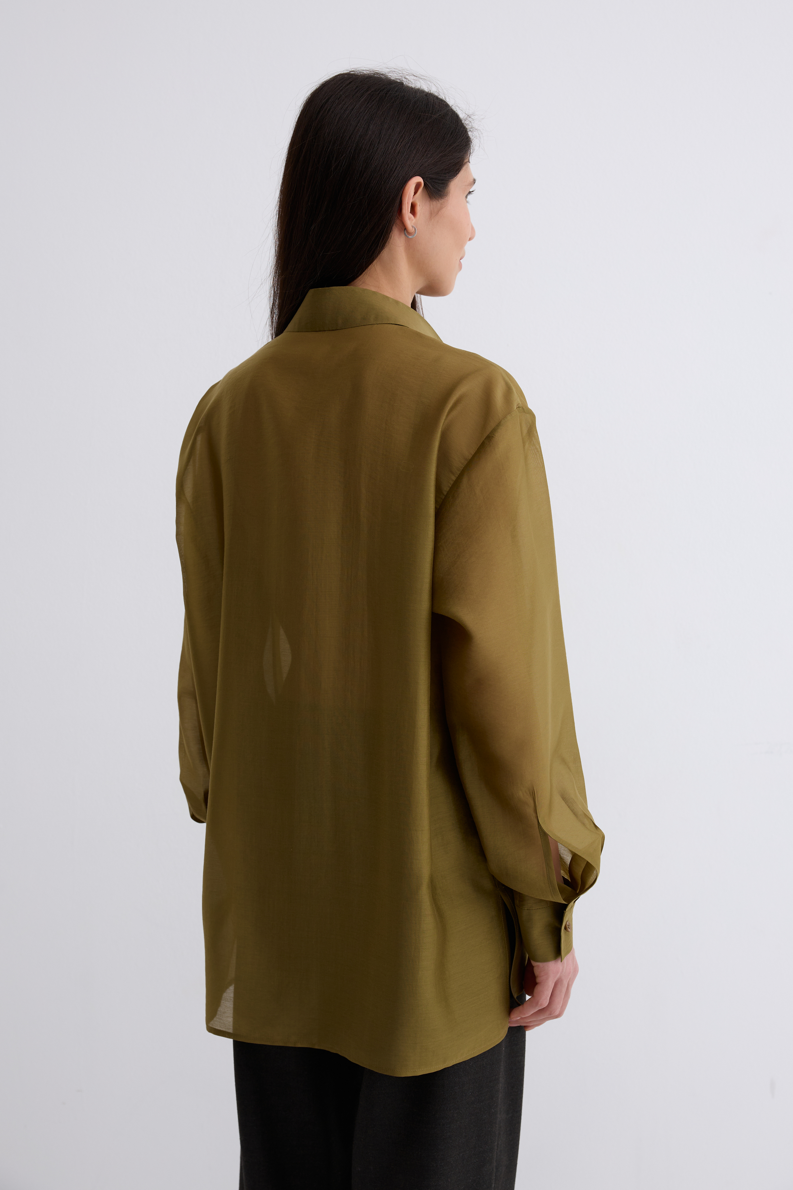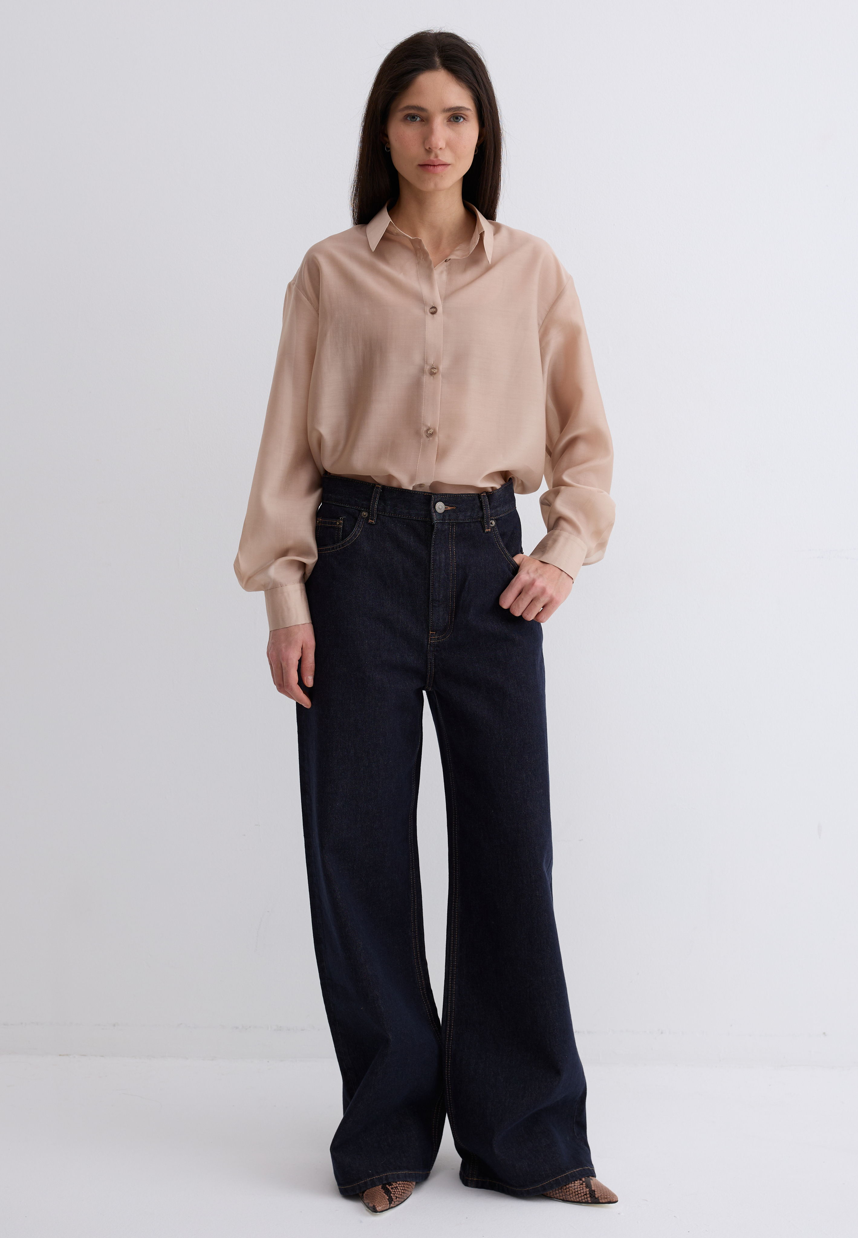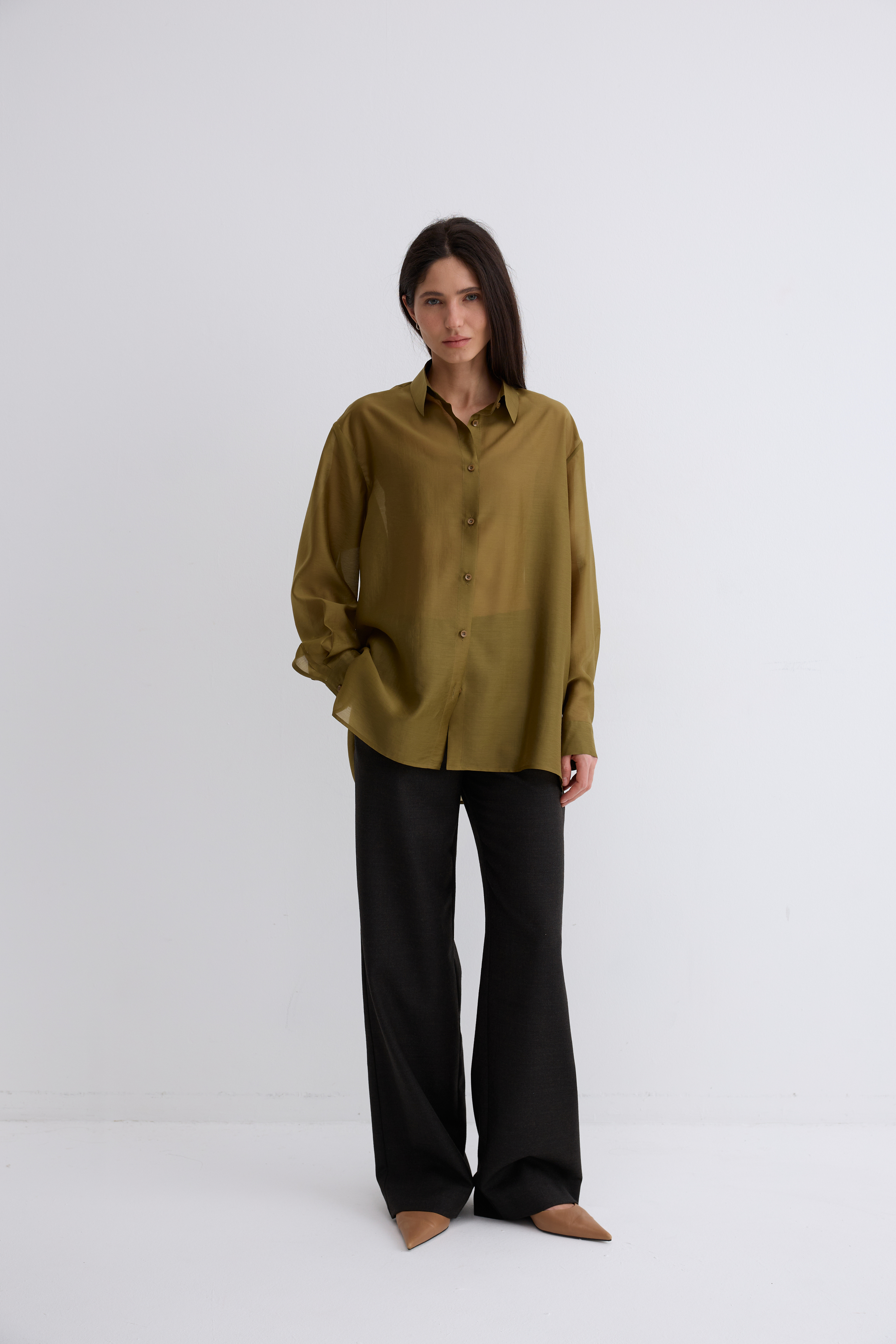 Рубашка Ветер. Классическая рубашка свободного кроя. Шелковистая, воздушная, при это ткань немного сухая, что создает форму, а не свивает. По бокам разрезы. Рубашка просвечивает. Размер единый.