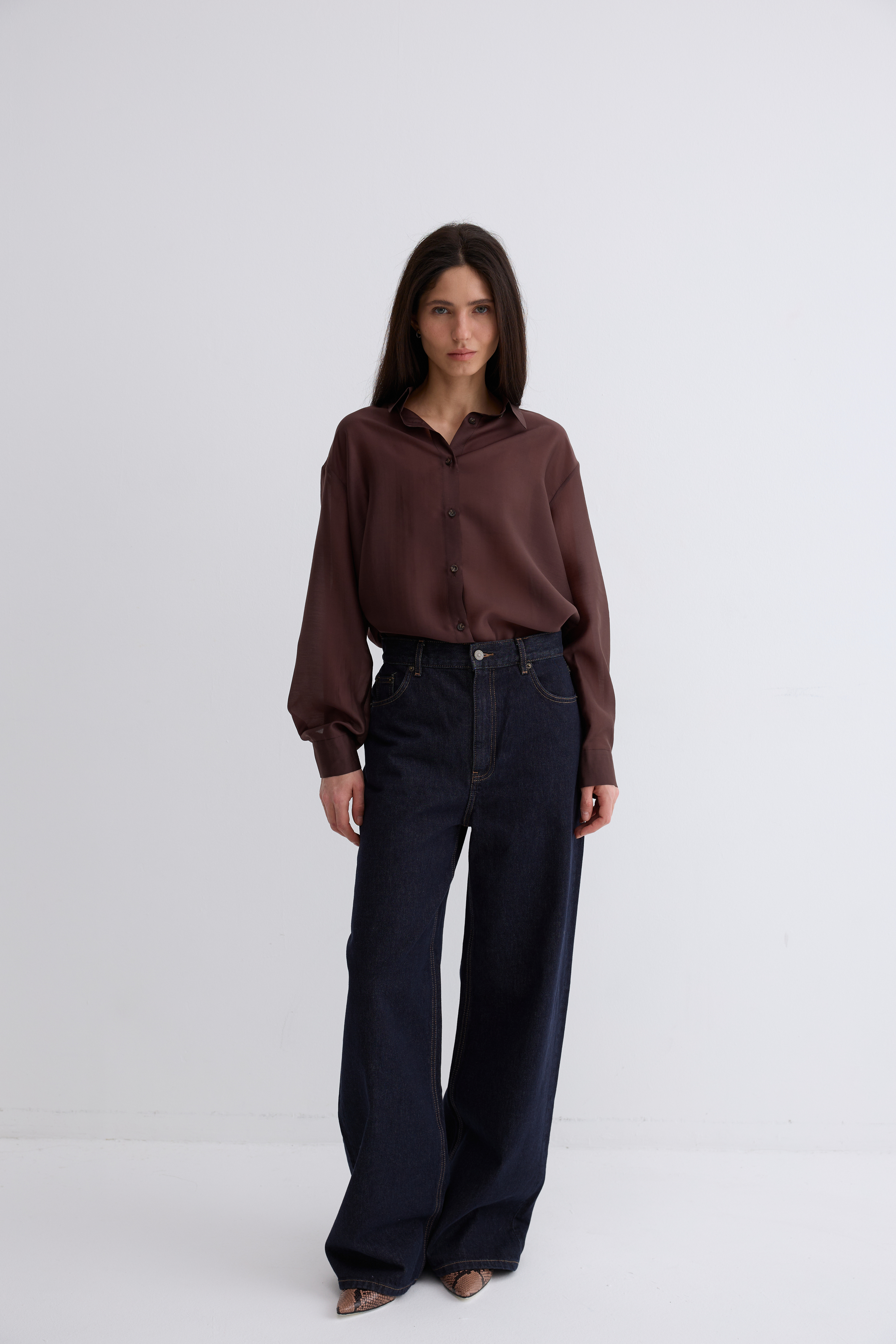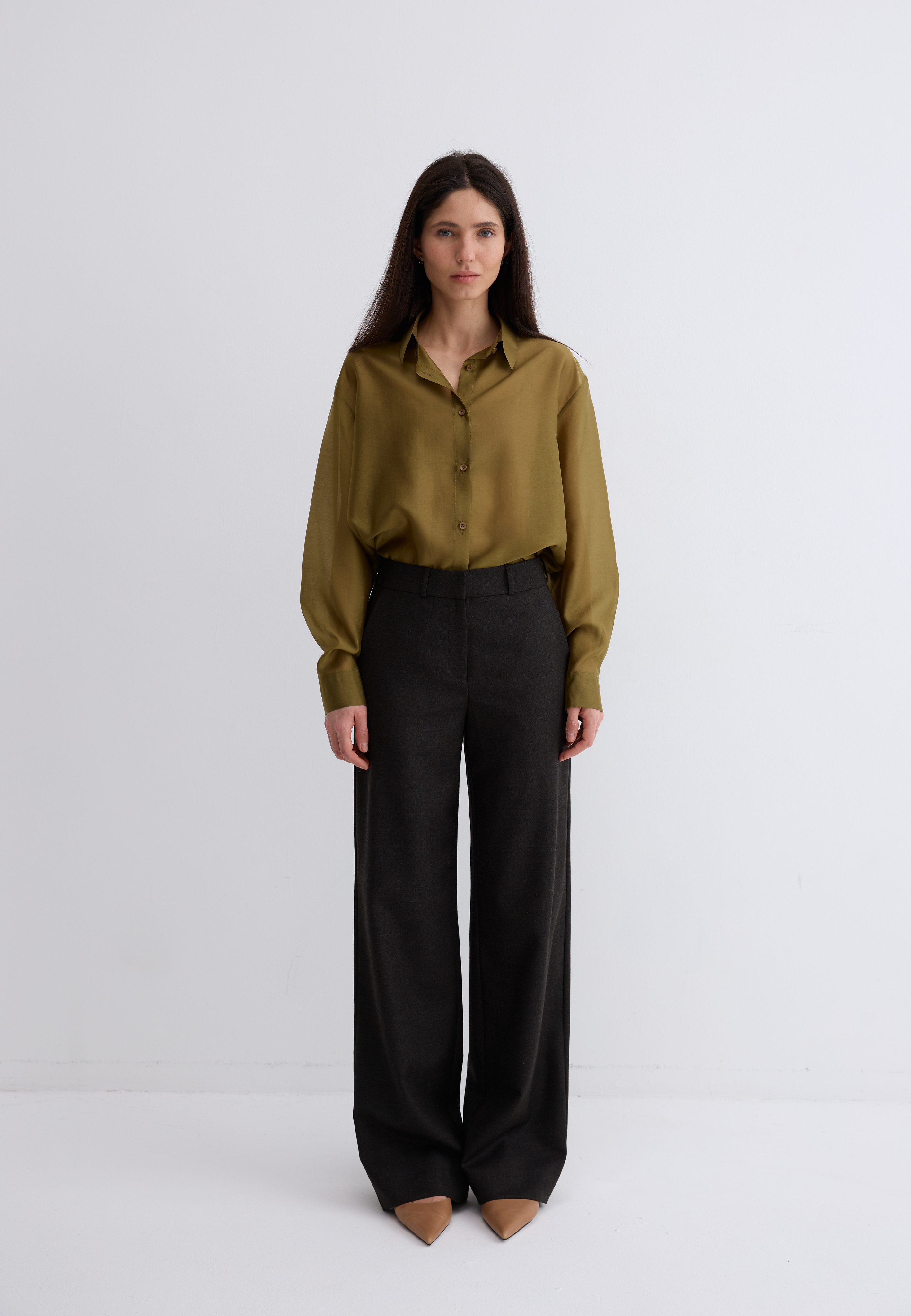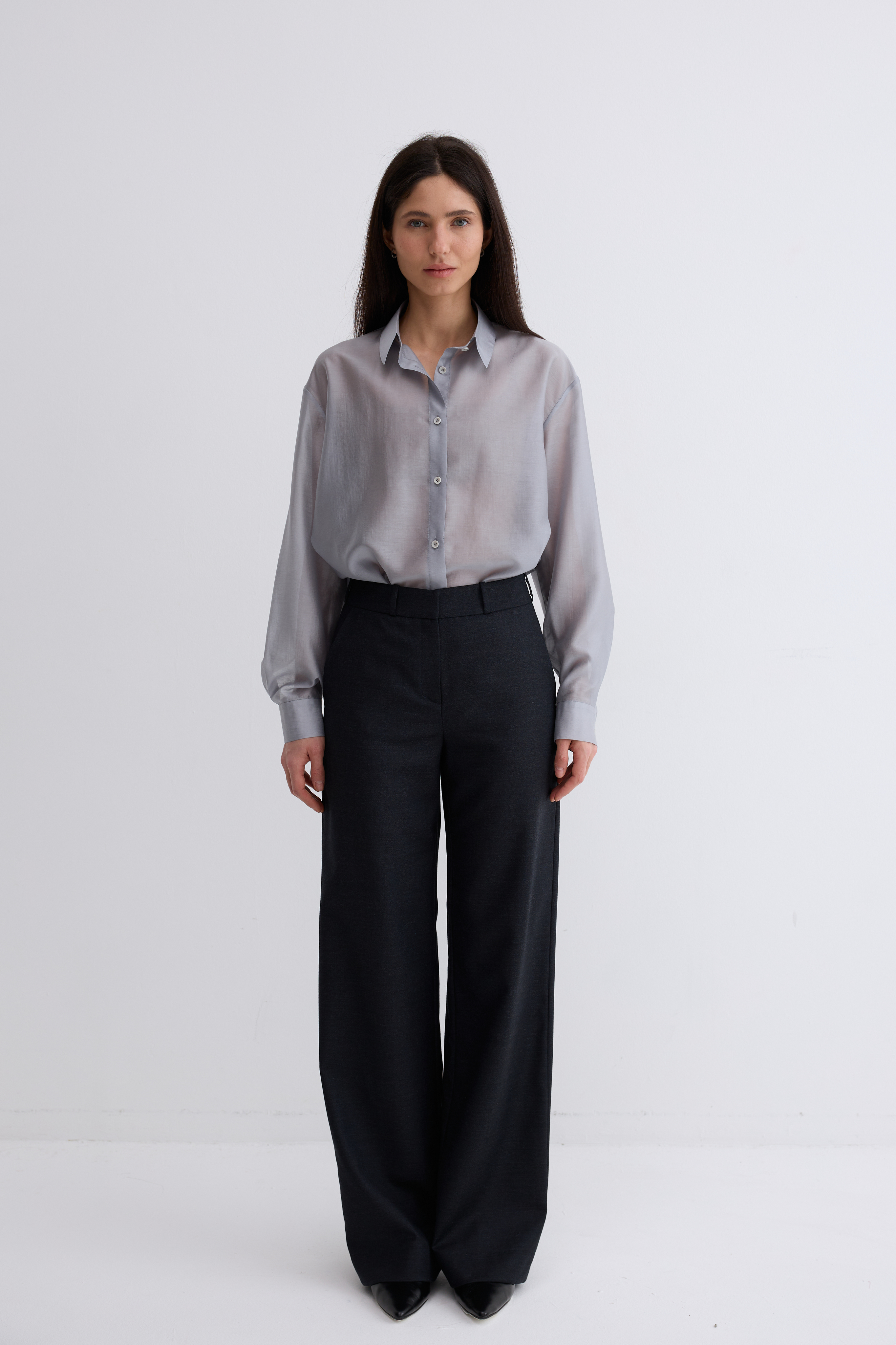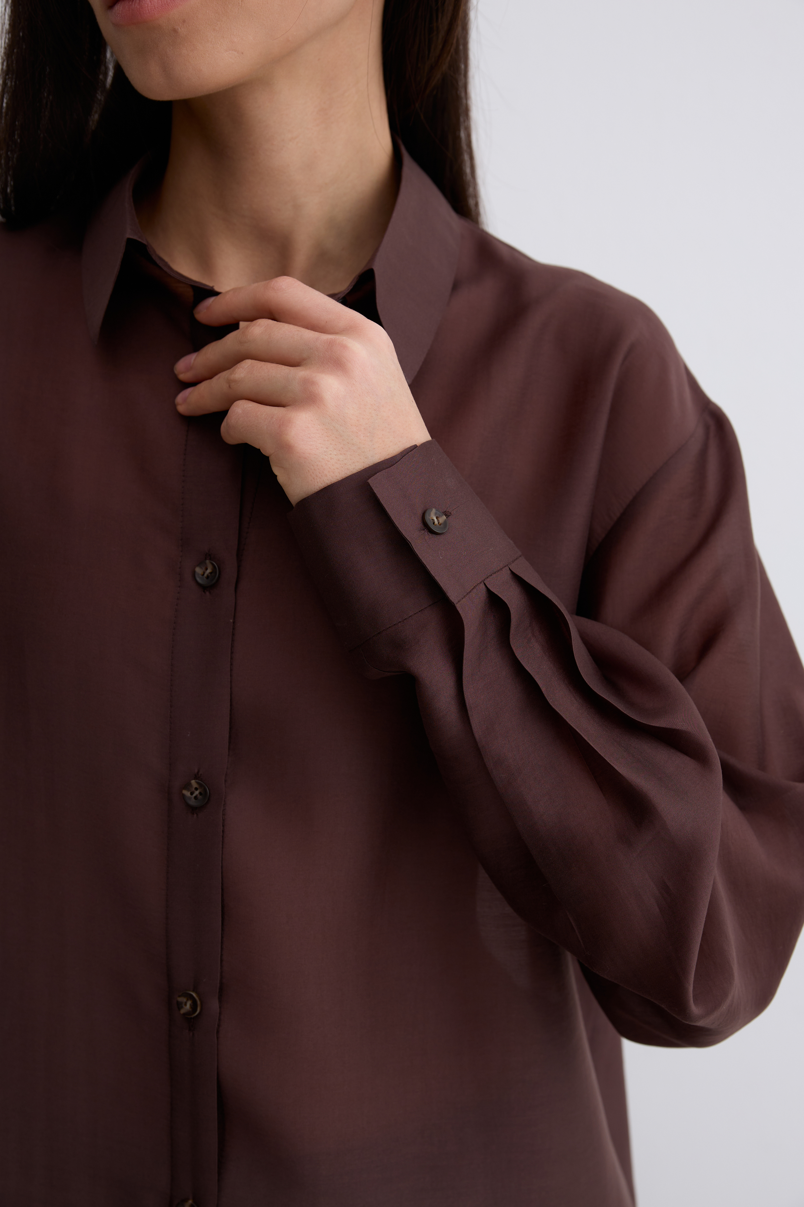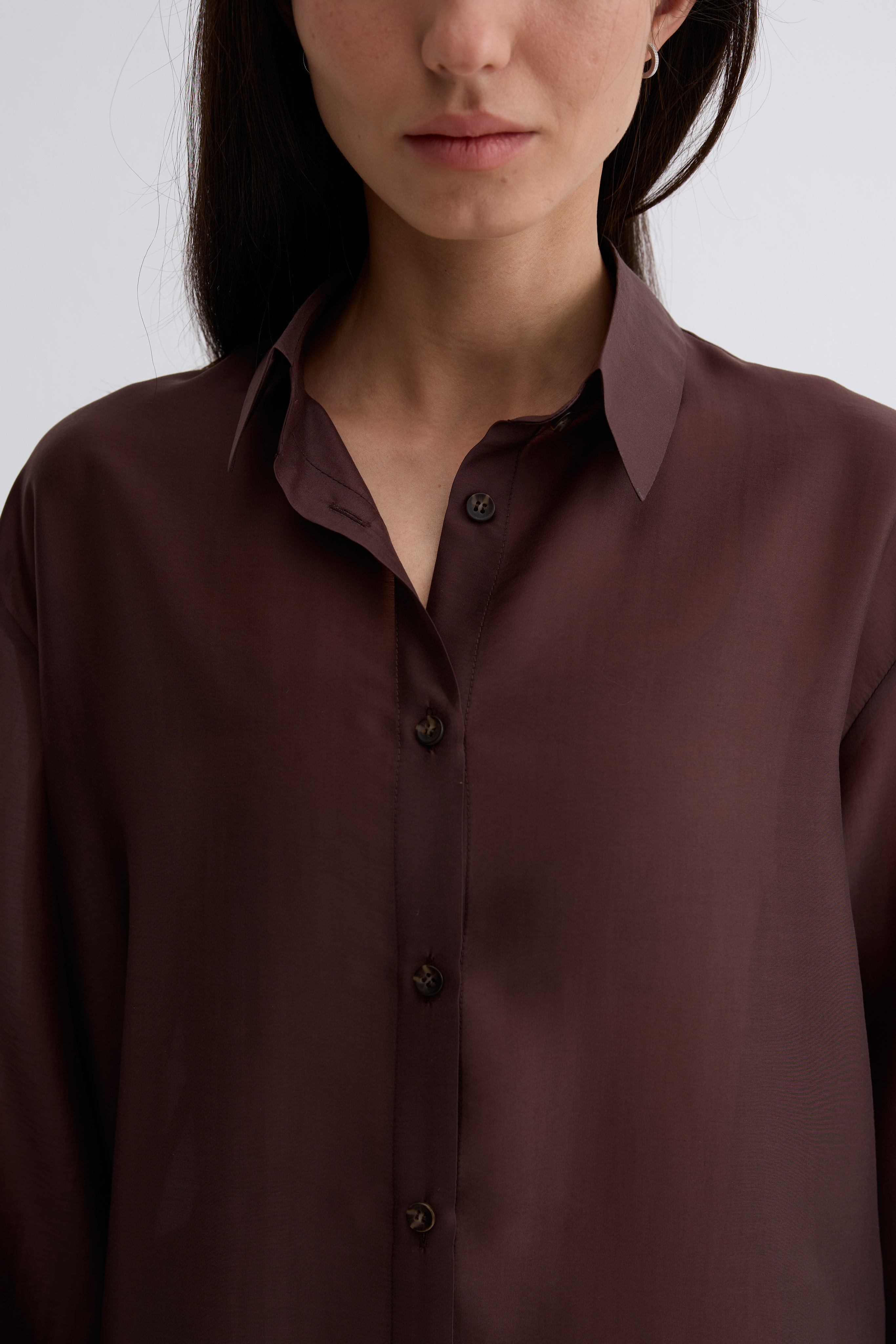 Рубашка Ветер. Классическая рубашка свободного кроя. Шелковистая, воздушная, при это ткань немного сухая, что создает форму, а не свивает. По бокам разрезы. Рубашка просвечивает. Размер единый.
