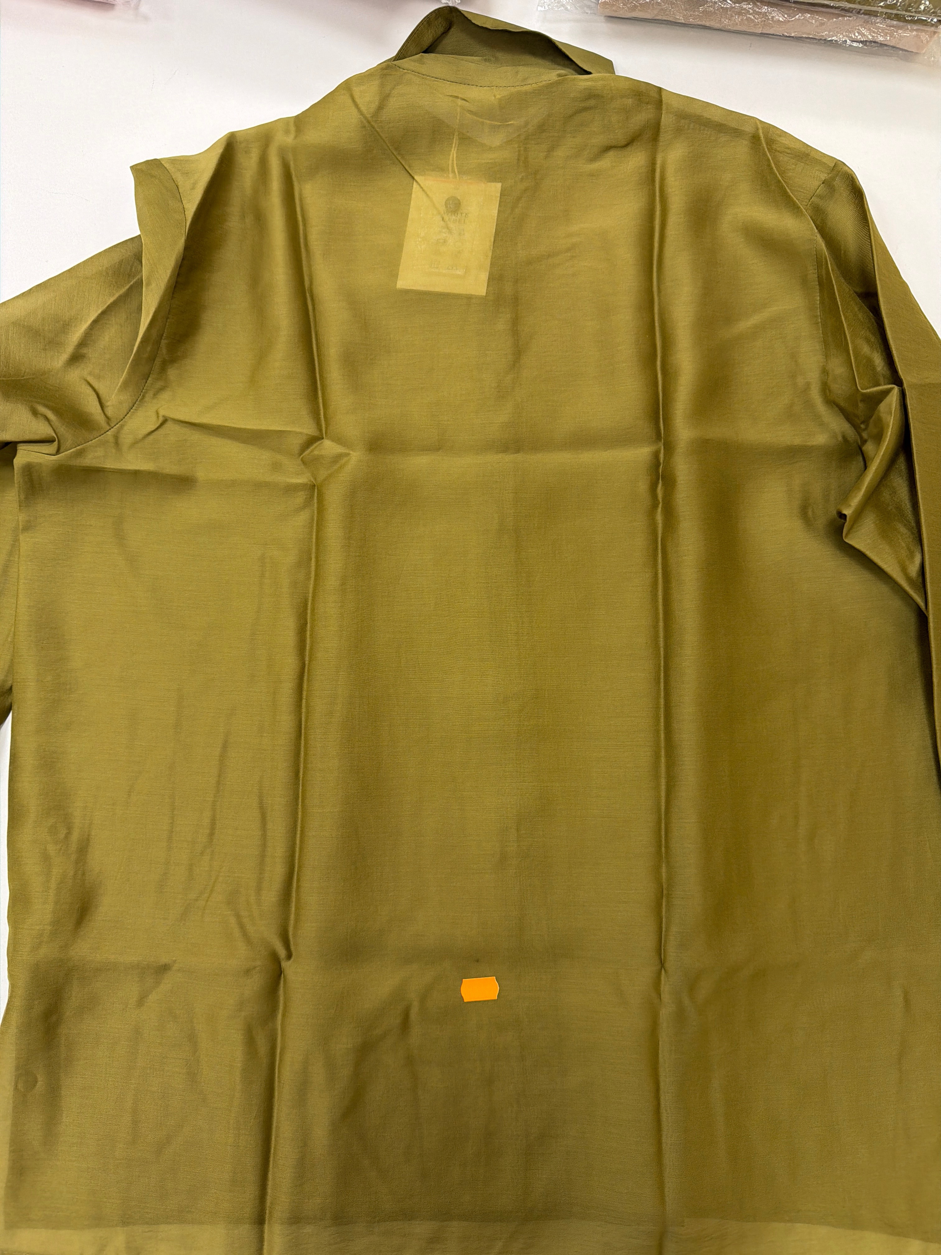 Рубашка Ветер из тенсела и хлопка. Цвет оливковый. Дефект ткани на спинке. №98