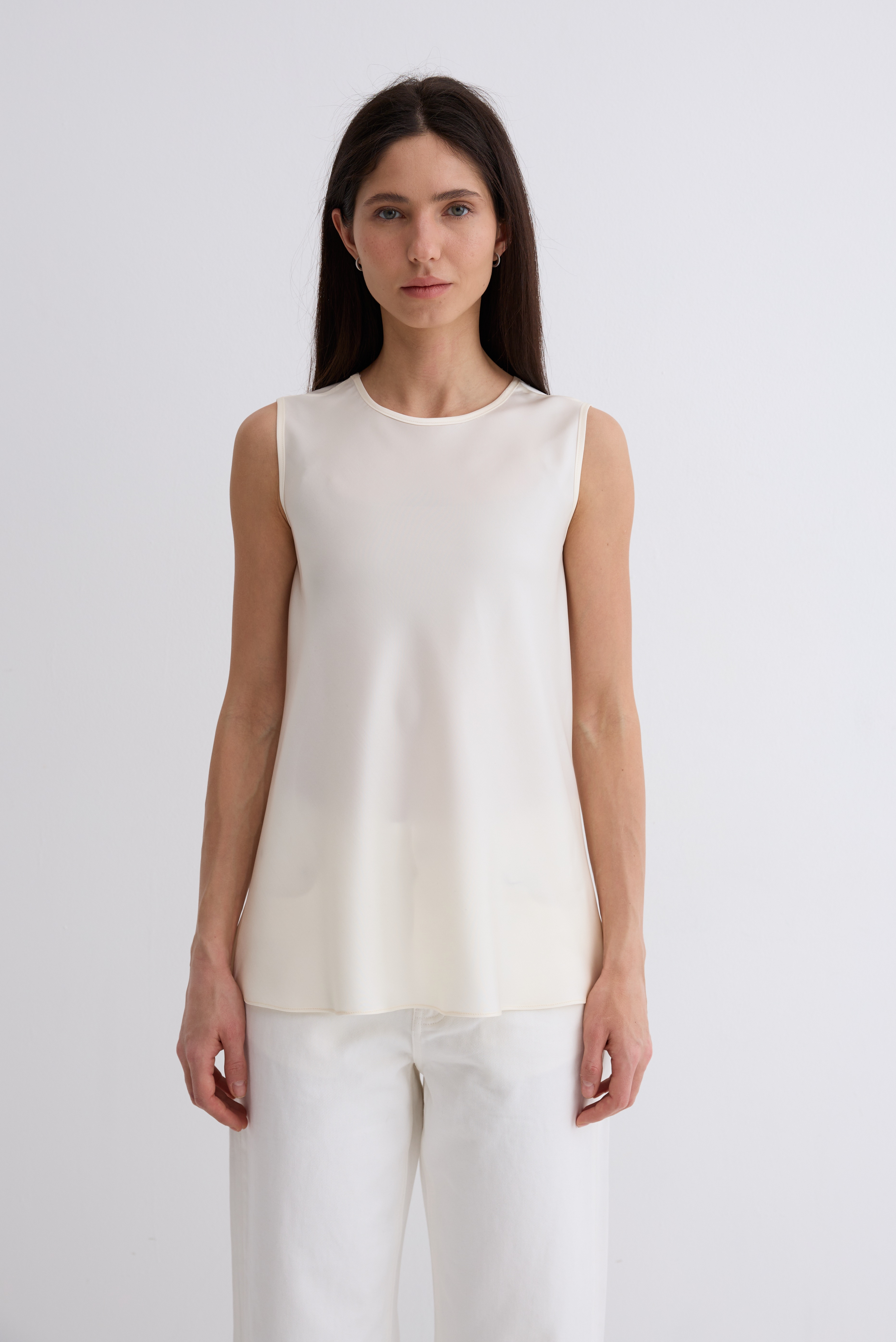 Топ Силуэтный. Крой по косой, топ красиво ложится и динамично выглядит в движении. Пластичная, шелковистая и лёгкая ткань, идеальна для соприкосновения с кожей. Прекрасно подойдёт как первым слоем, так и самостоятельно.